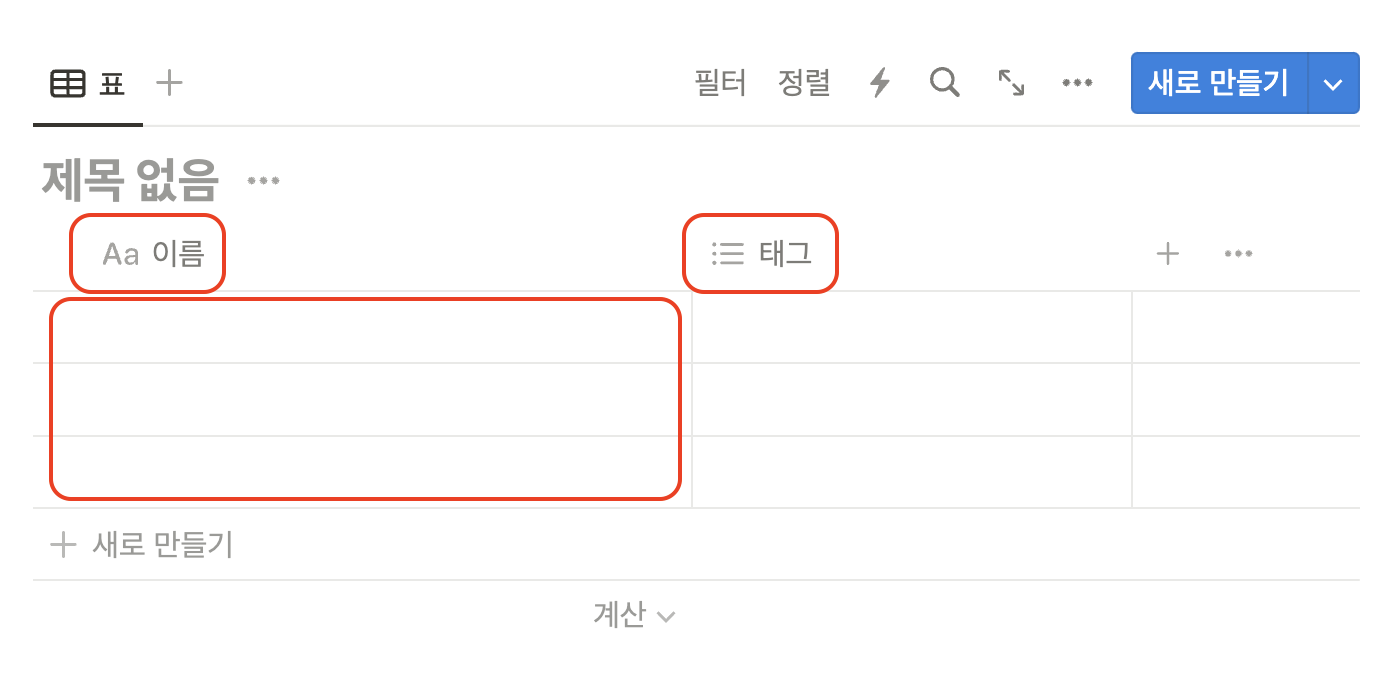속성, 애트리뷰트, 어떤 것으로 불러도 괜찮지만 앞에서 봤듯이 노션의 데이터베이스는 Key가 딱히 없다.