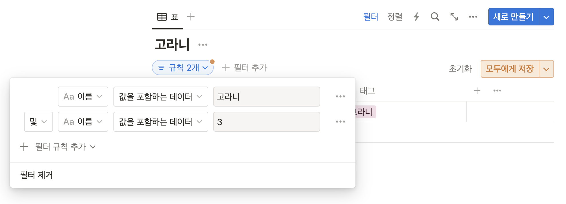 데이터베이스 필터와 정렬