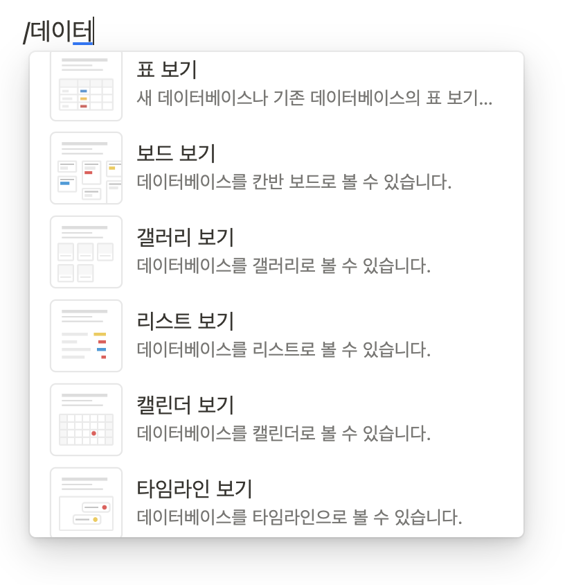 노션이 조금 더 완성도 있게, 더 많이 지원해주는 부분이 있지만, 사실 이 블록들보다 노션이 힘을 쓰고 있는 부분은 데이터베이스다.
