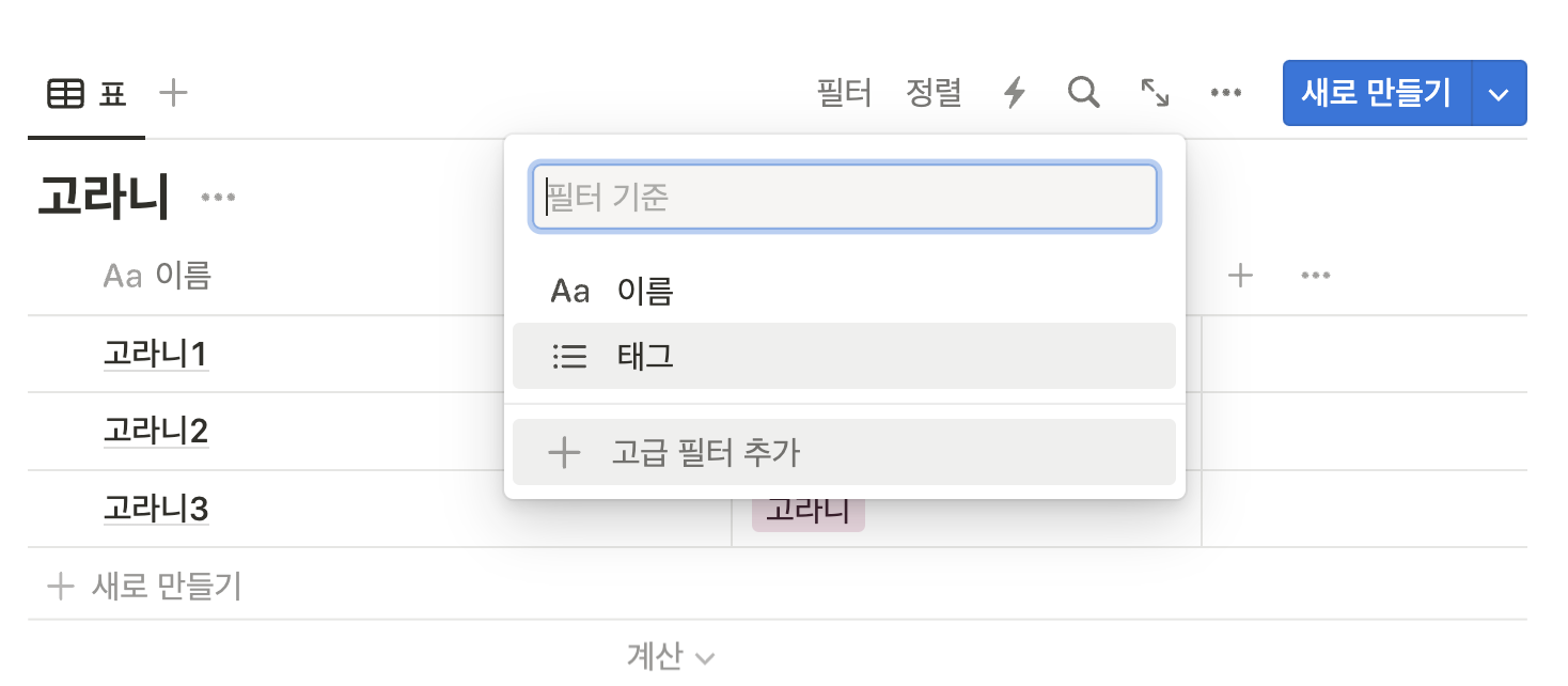 하지만 노션의 보기는 이와는 조금 다르다.