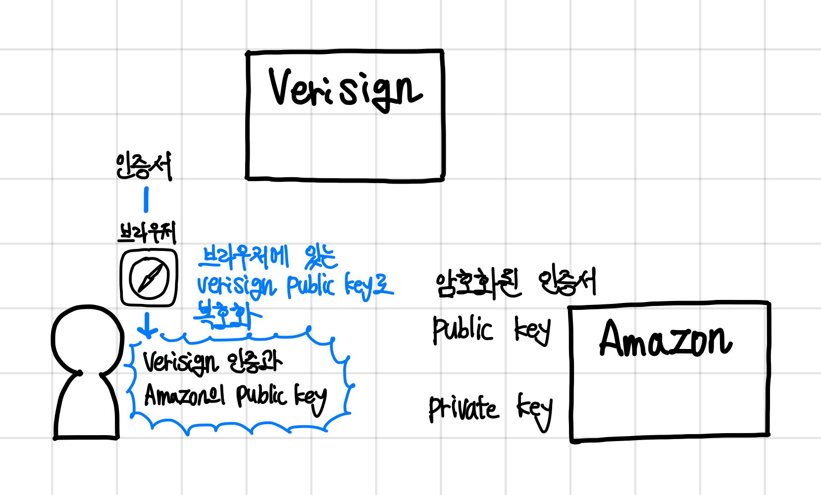 사용자는 아마존을 신뢰한다고 가정하고, 아마존의 public key를 제대로 수령했다고 한다.▼