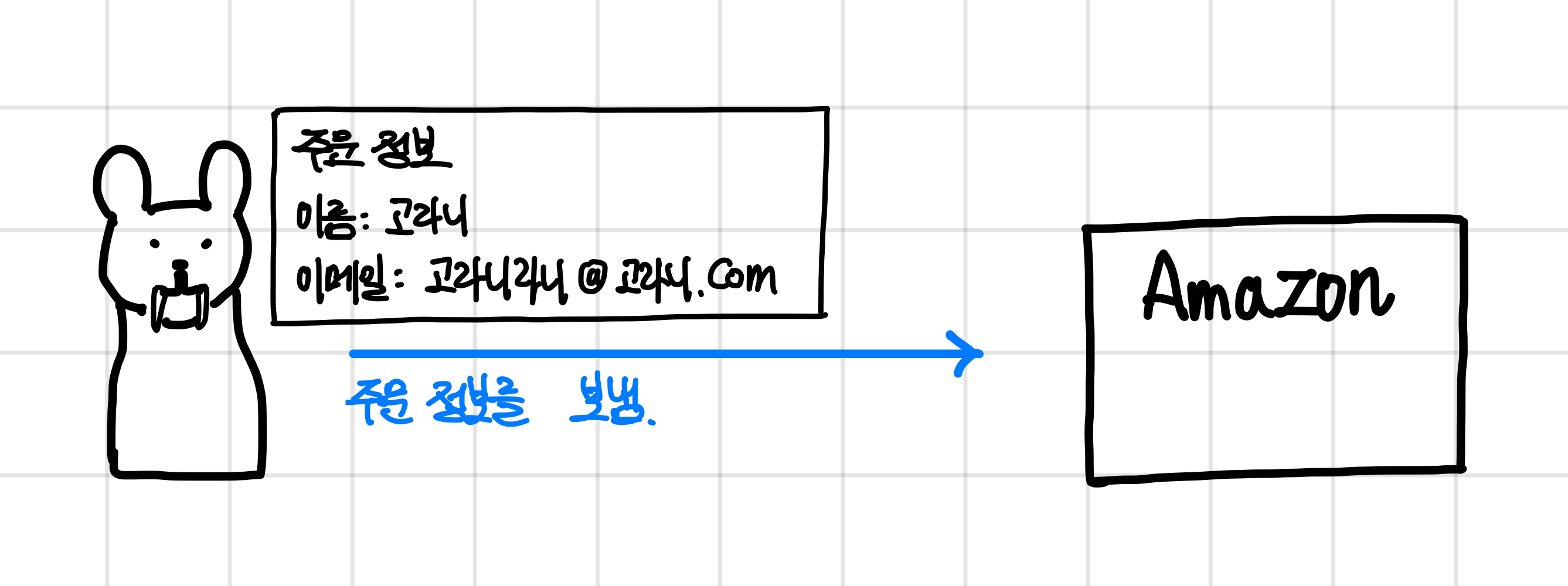 위의 예시와 같이 사용자가 아마존에서 주문을 하기 위해 카드 정보와 같은 주문 정보를 보낸다고 해보자.