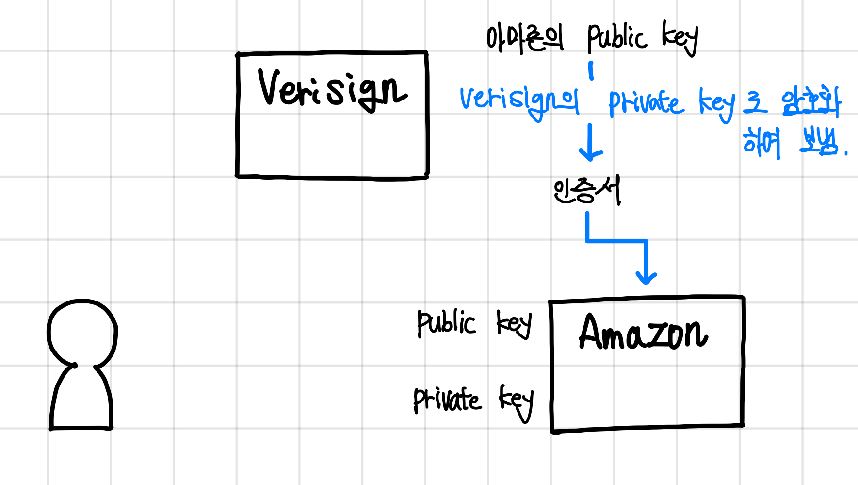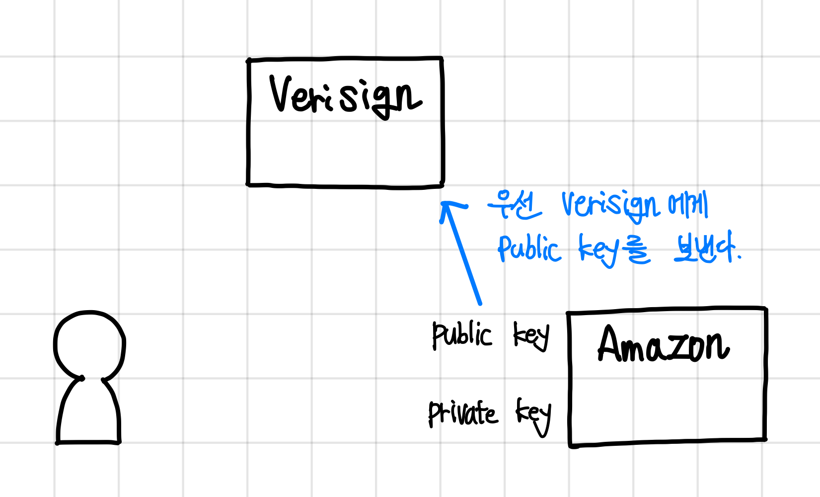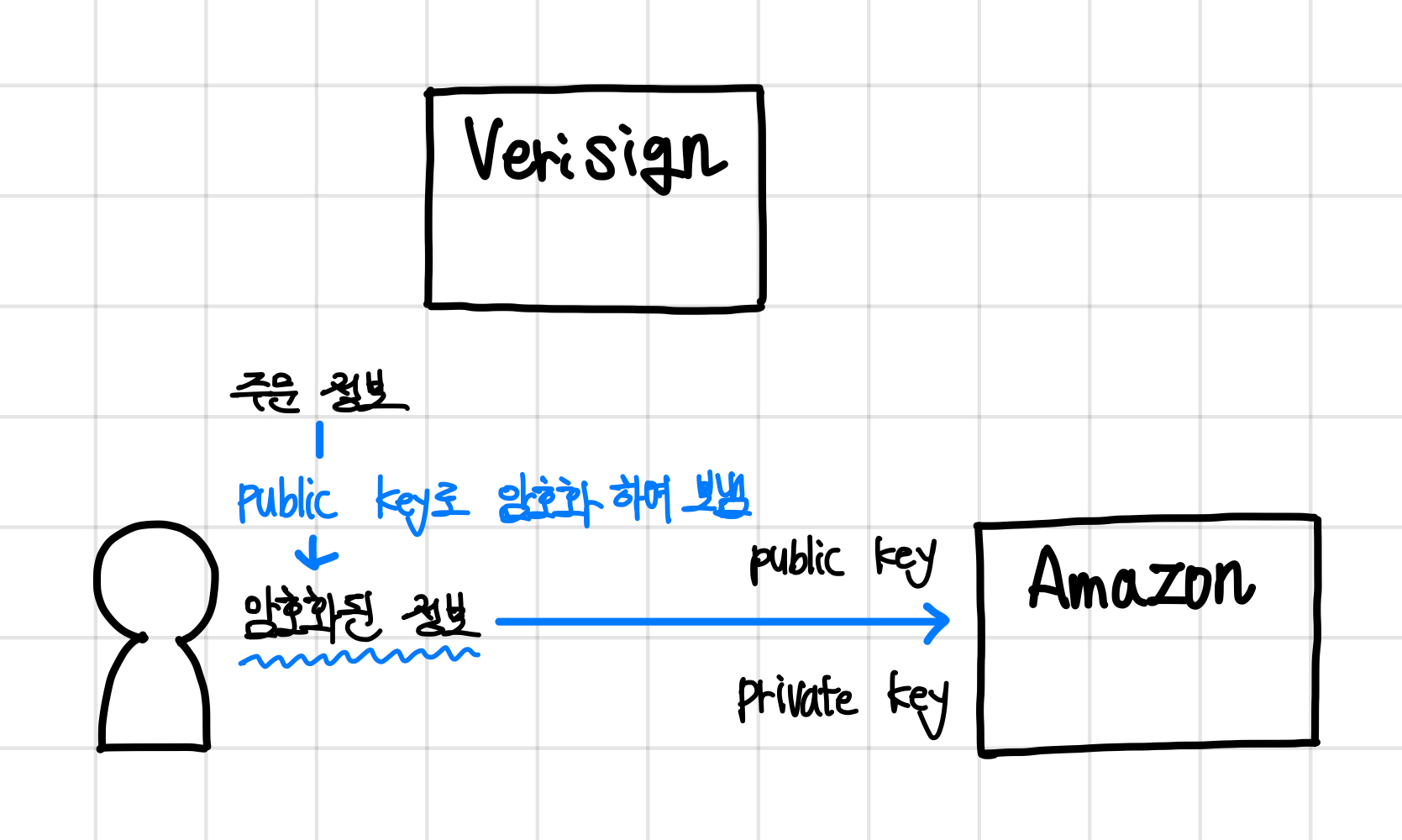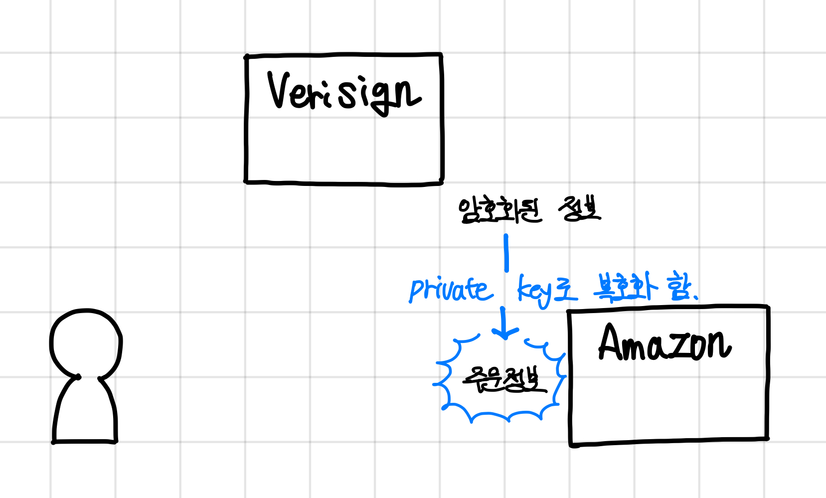 아마존의 public key를 받은 Verisign은 Verisign만 아는 private key로 암호화를 한 인증서를 아마존에게 다시 보내준다.▼