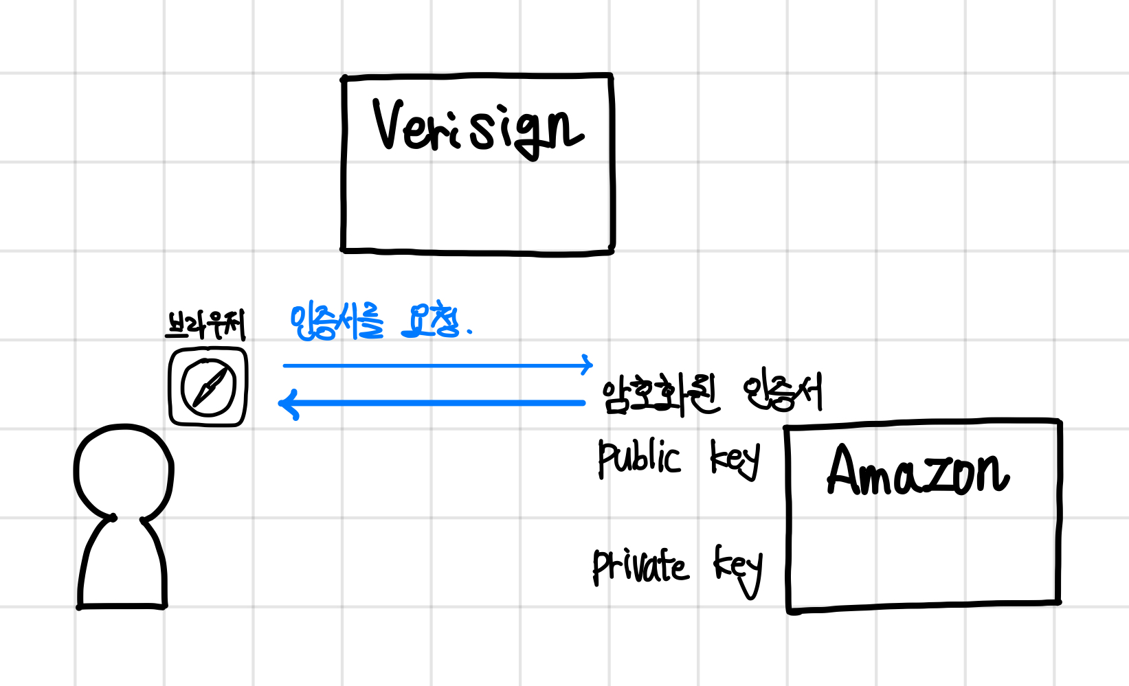 아마존은 그 요청을 받고 브라우저에게 암호화된 인증서를 보낸다.▼