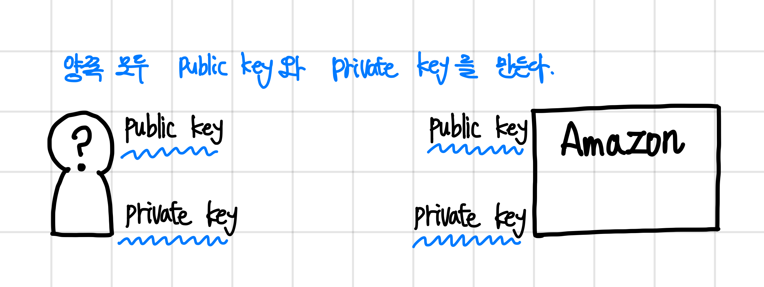 아마존은 암호화를 해주는 public key와 이를 복호화 해주는 private key를 만든 후, public key를 사용자들에게 전송한다.▼