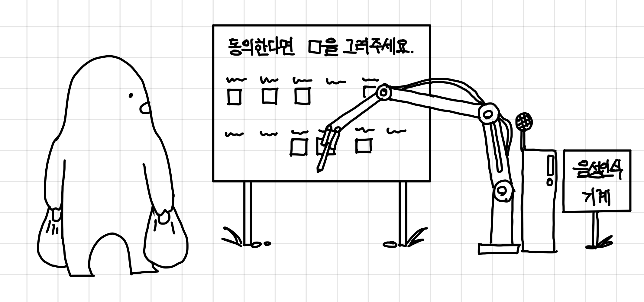 우리가 사각형을 그리고 싶은데 양 손에 무언가가 들려있어서 음성 인식 기계를 시켜서 사각형을 그리게 하는 상황을 생각해보자.▼