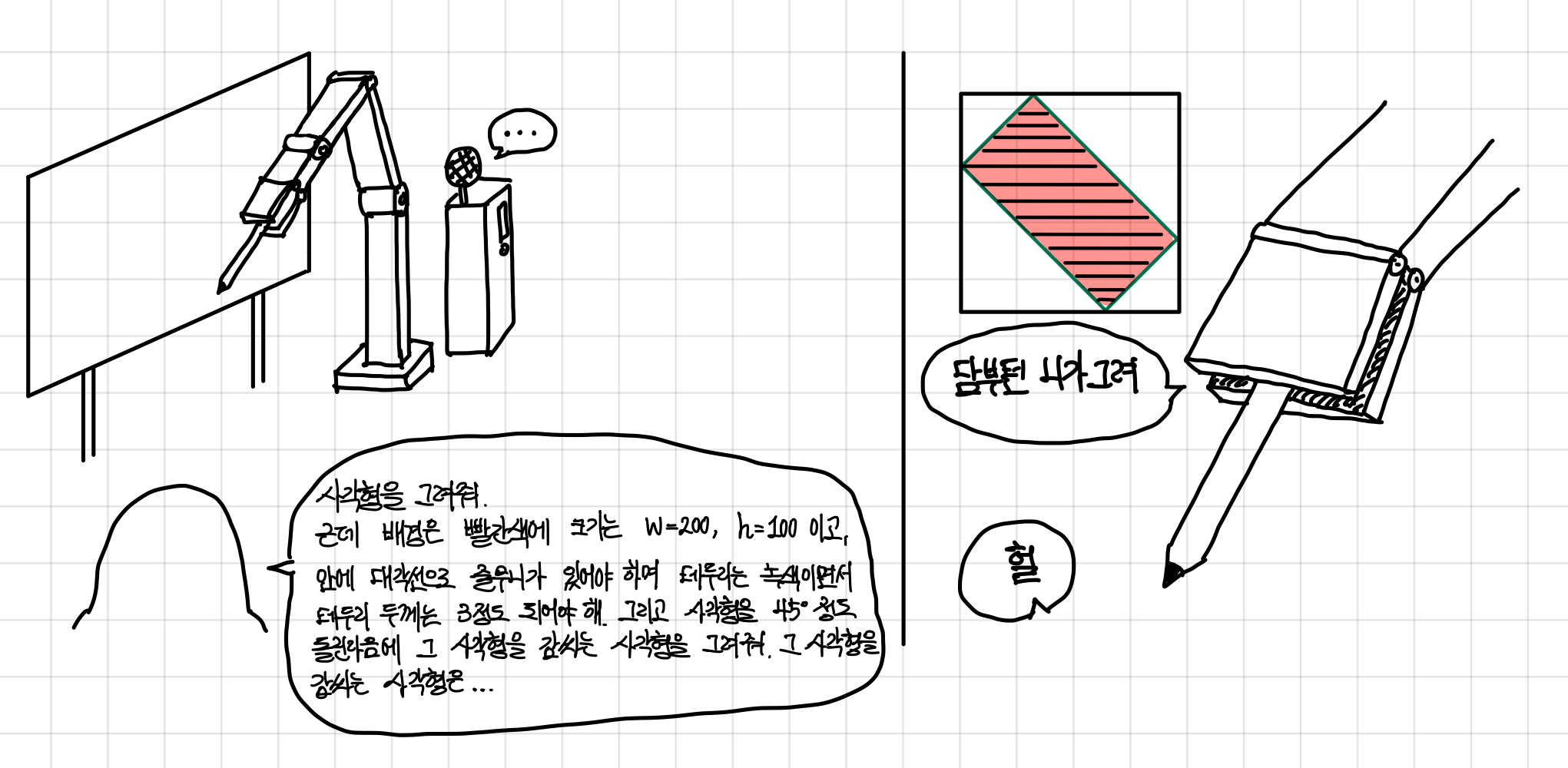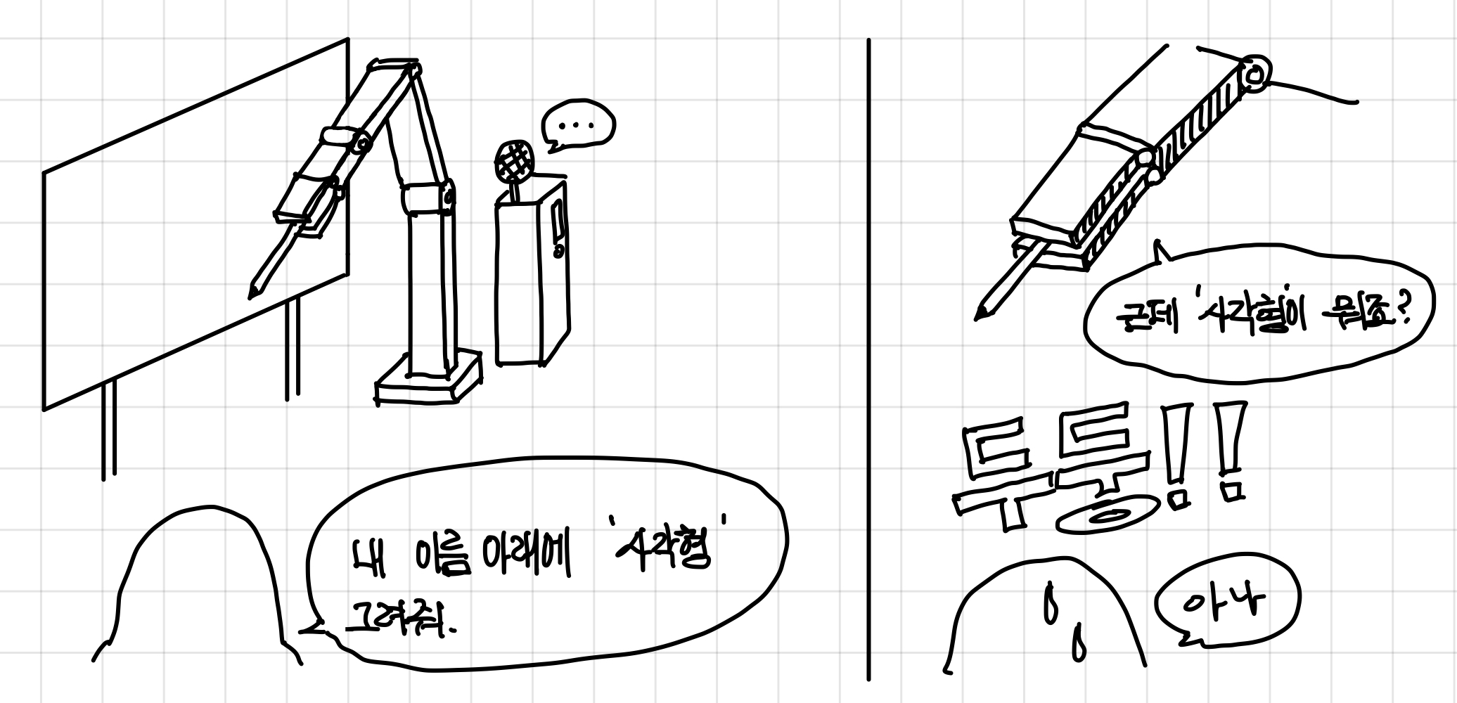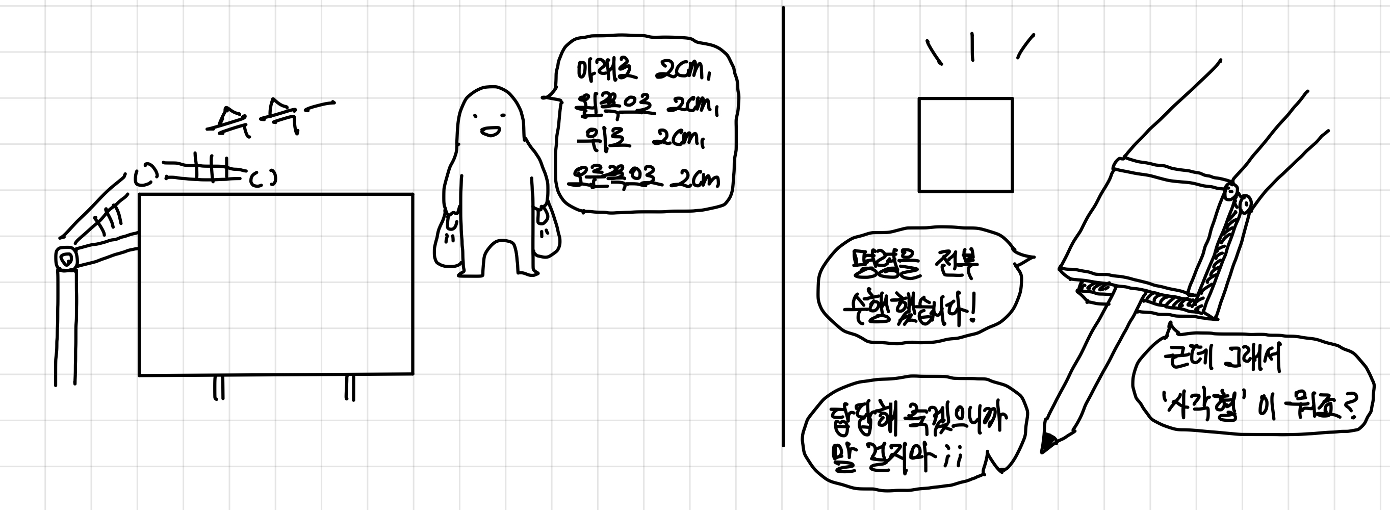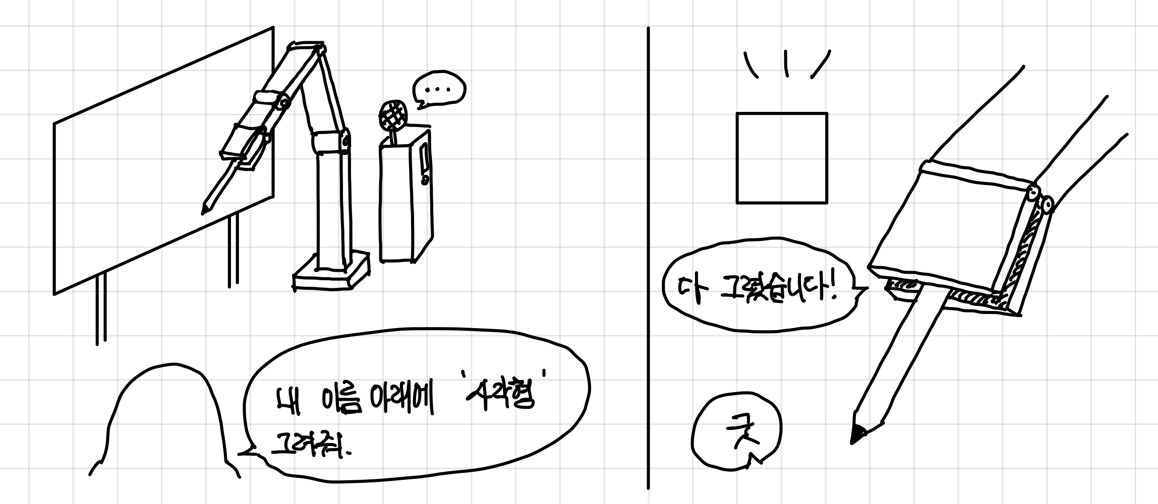 그래서 기계에게 사각형을 그려달라고 했는데, 사각형이 뭔지 모르는 상황이다.▼