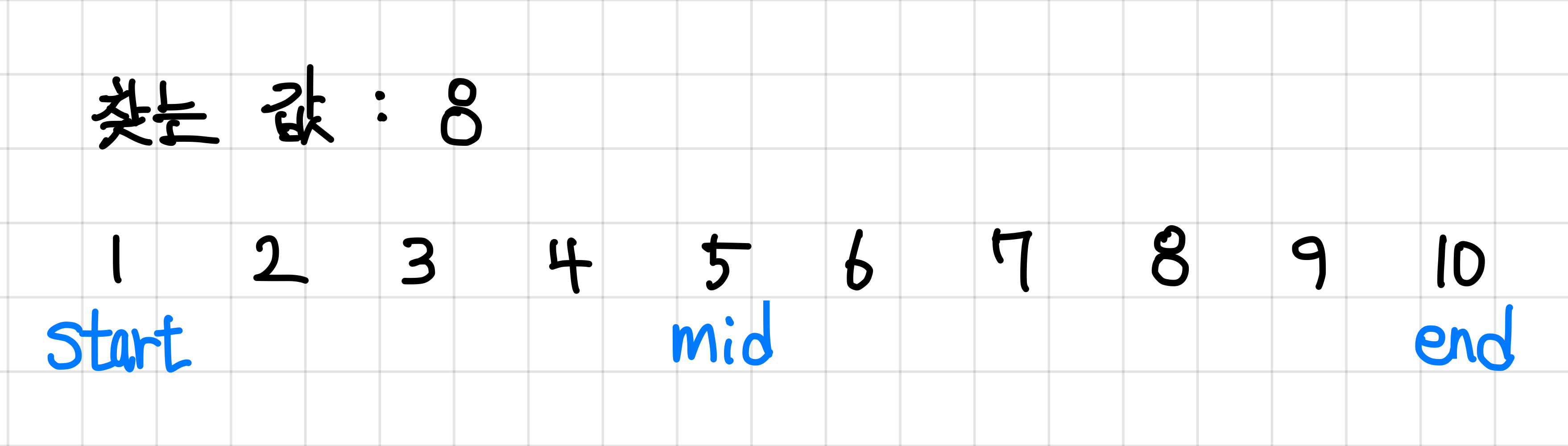 반대로 찾는 값이 더 작다면, end 값을 mid 이전 값으로 바꿔준다.