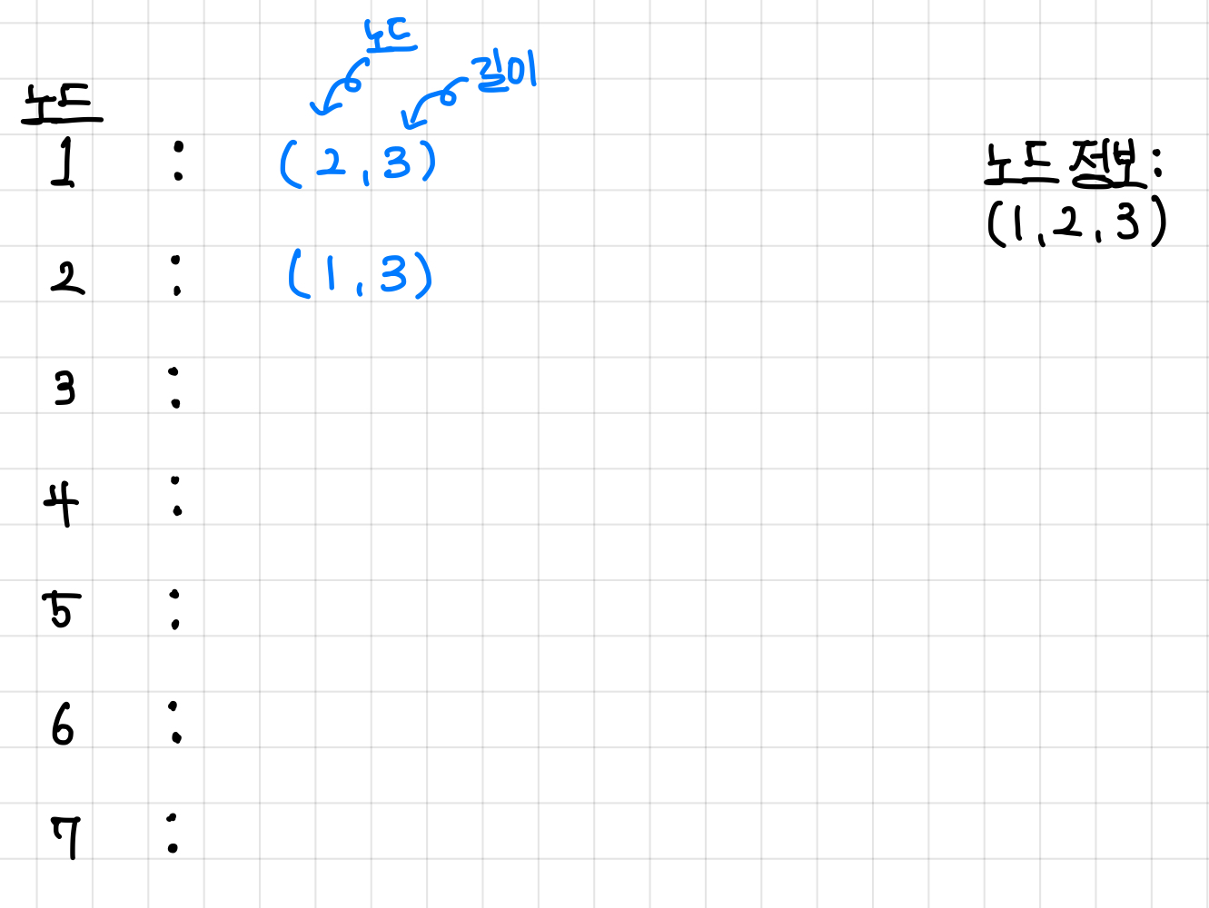 튜플의 내용은 (노드 인덱스, 길이) 이다.▼