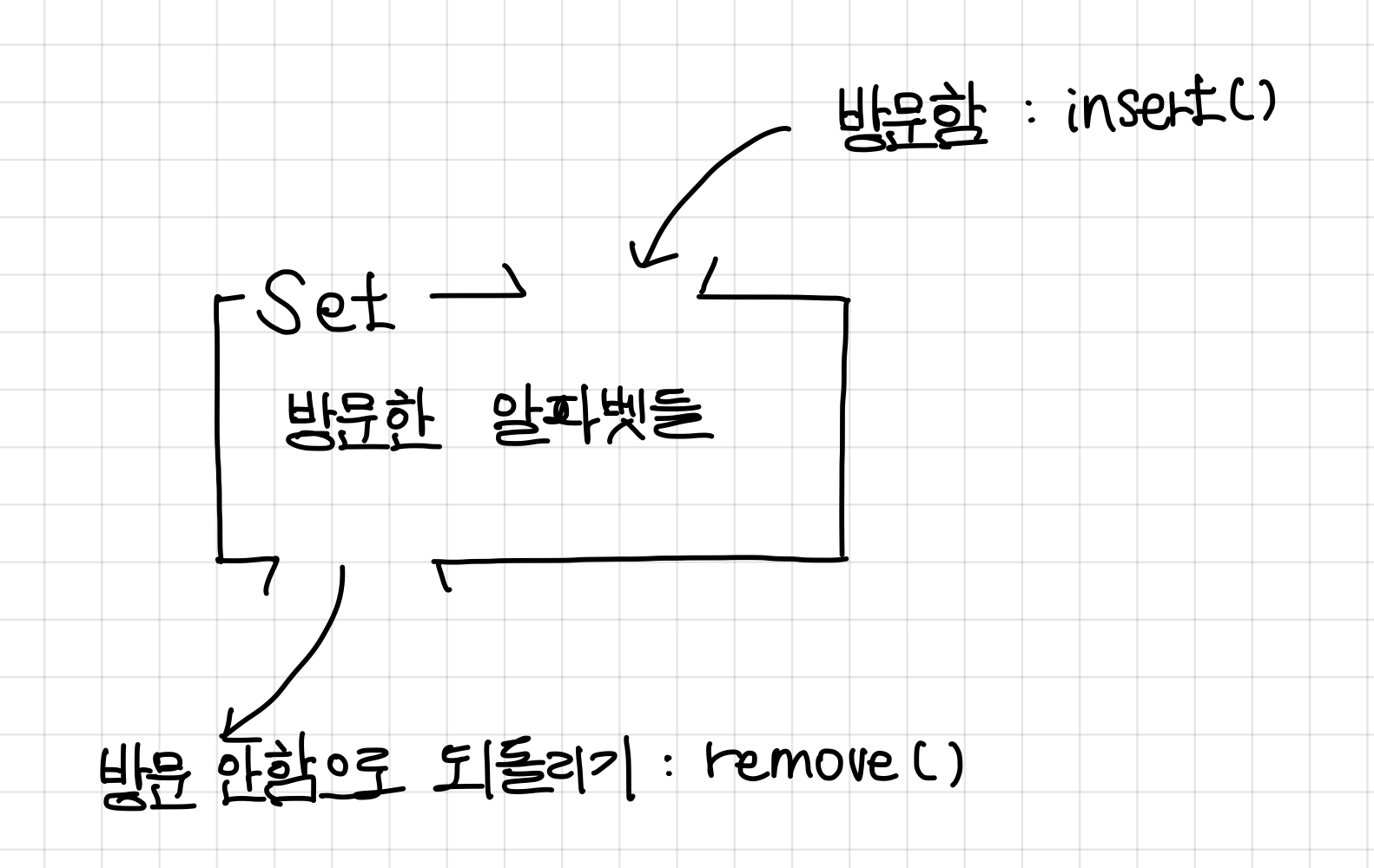 하지만 `Set`을 사용하게 되면, 방문 여부를 `true`로 바꾸는게 `insert()`, 방문 여부를 다시 `false`로 바꿔주는게 `remove()`에 해당한다.▼