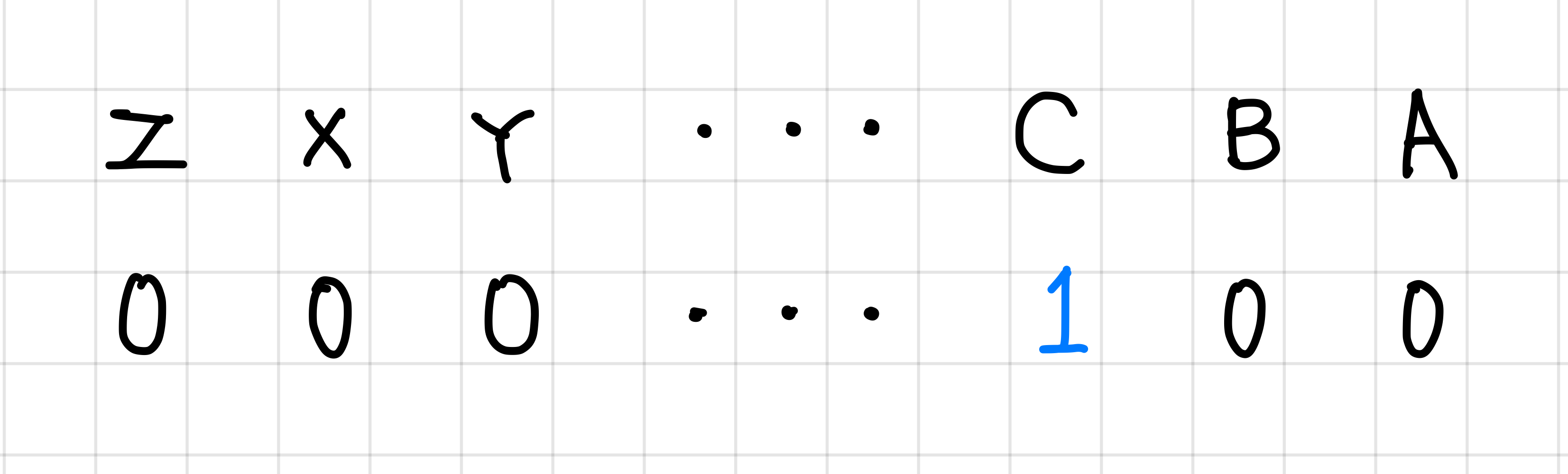 저렇게 C에 해당하는 순서의 이진수가 1이 되면 C를 밟았다는 의미이다.