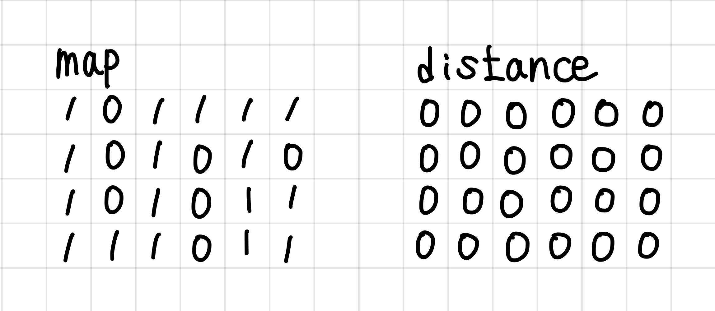 1. 가장 먼저 미로와 거리를 나타내는 배열을 만들어 준다.▼