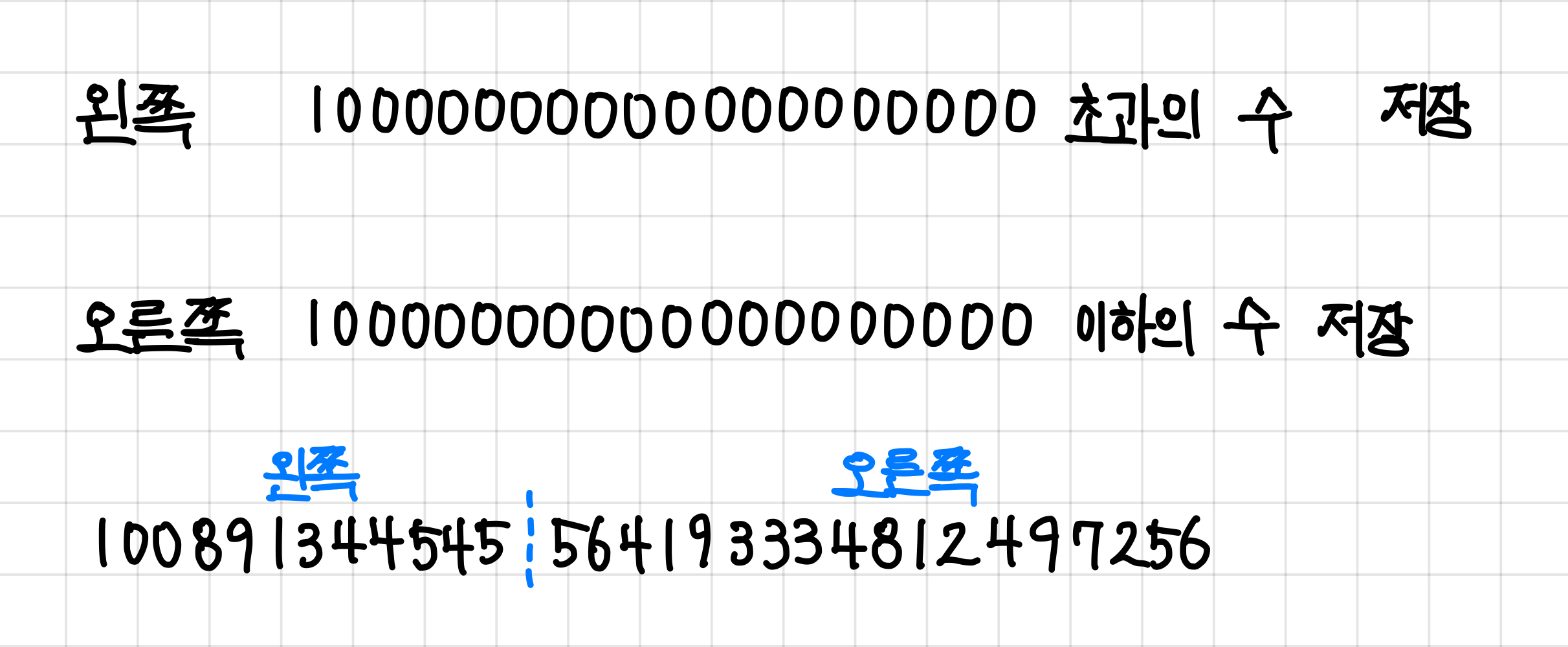 그렇게 되면 왼쪽에는 1000000000000000000 이상의 자릿수의 값만 모이게 되고, 오른쪽에는 그 이하의 자릿수의 값만 모이게 된다.▼