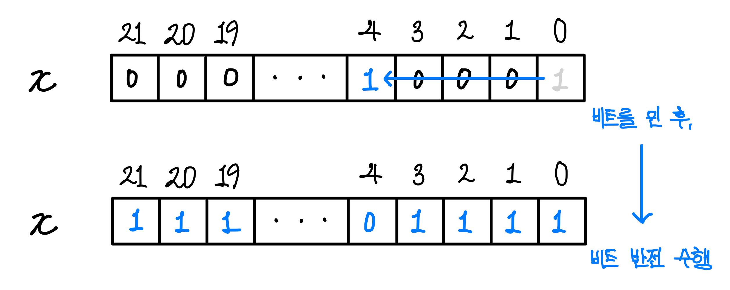 거기서 1을 빼면, 1부터 20번째까지 모든 비트가 1이 된다,