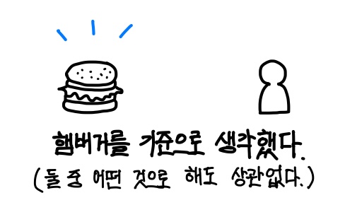 햄버거와 사람 둘 중 어느것을 기준으로 해도 상관이 없지만, 필자는 햄버거를 사람한테 할당하는 방식으로 생각했다. ▼