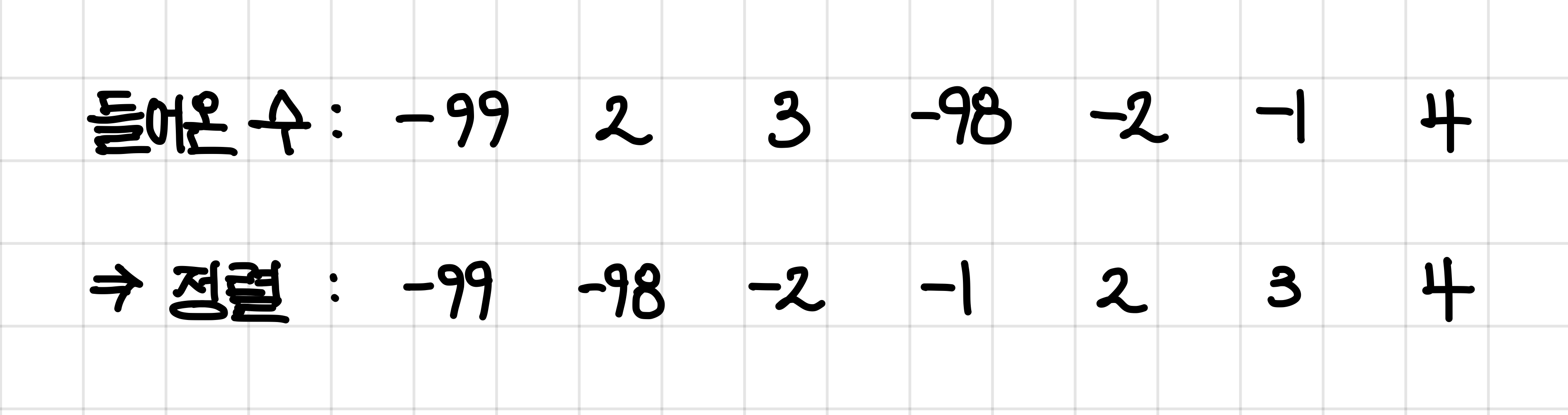 그래서 일단 음수와 양수가 분리될 수 있게끔, 정렬을 해준다.