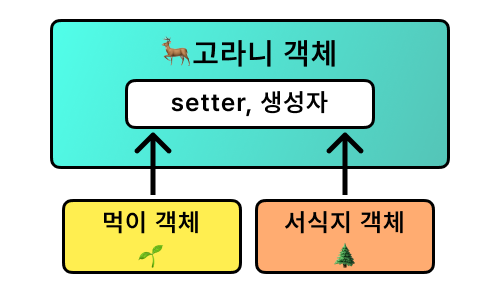 Food와 Forest의 하위 객체들을 Gorani에게 넘겨줄 수 있게 된다. - 생성자 수정 필요 없어짐