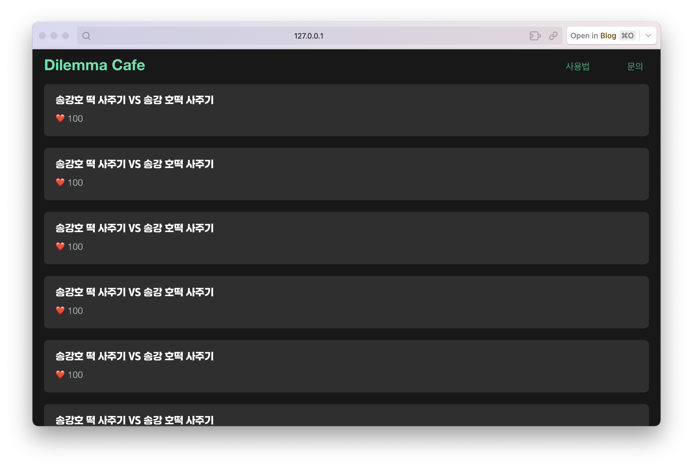 그 아래에는 인기 딜레마들의 리스트가 보여질 것이다. Top 10을 보여줄 예정이다. ▼