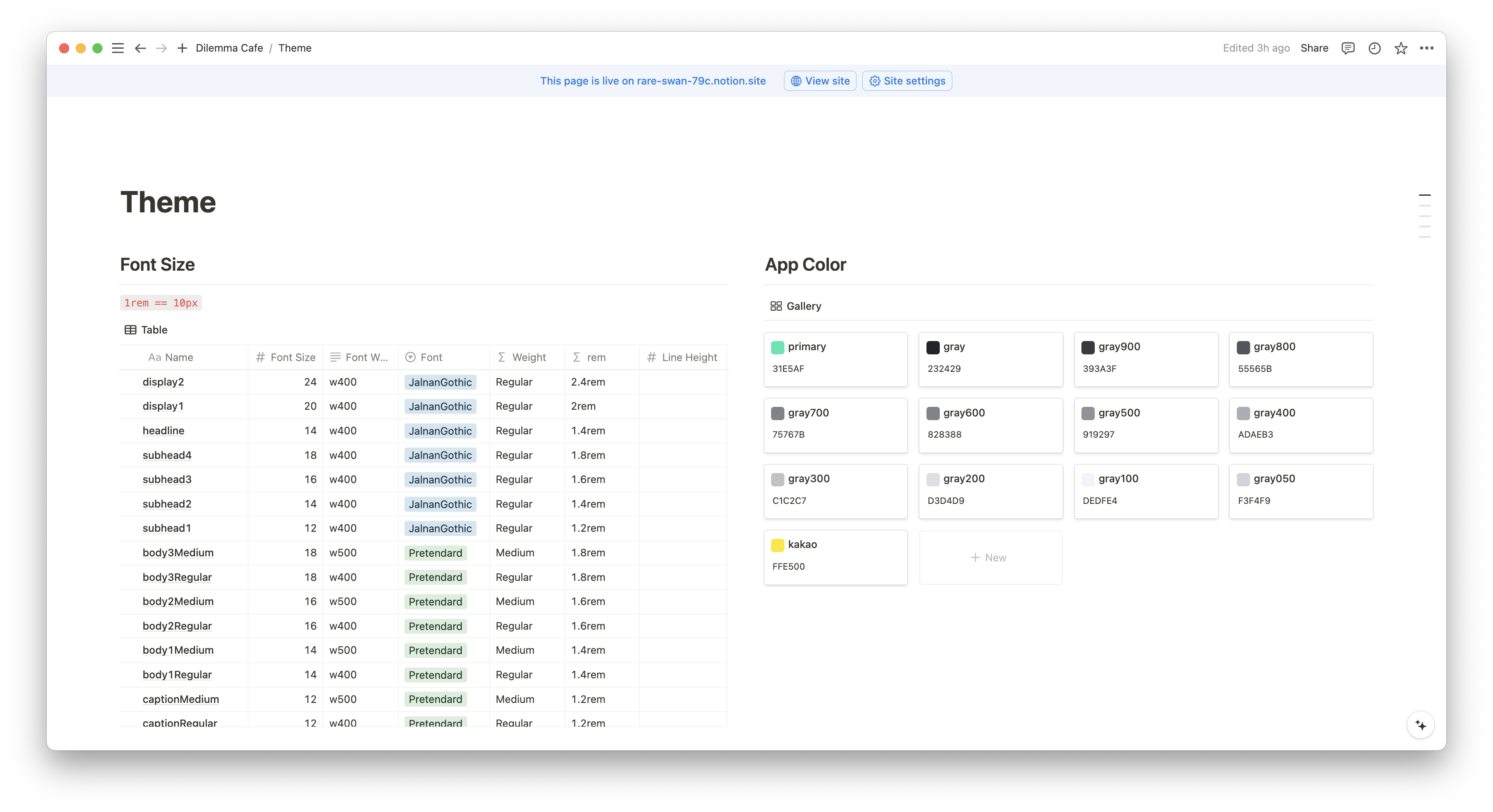 그래서 이를 적용하기 위해 Notion을 이용하여 전체적인 테마를 문서화 해두었다. ▼