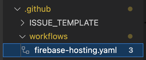 Secrets까지 다 설정했다면 다음으로는 Github Actions를 설정했다. 설정이라기에는 스크립트를 짰다. `.github` 디렉토리 안에 `workflows` 디렉토리를 만든 후, `firebase-hosting.yaml` 이라는 이름과 확장자로 스크립트를 만들었다. ▼