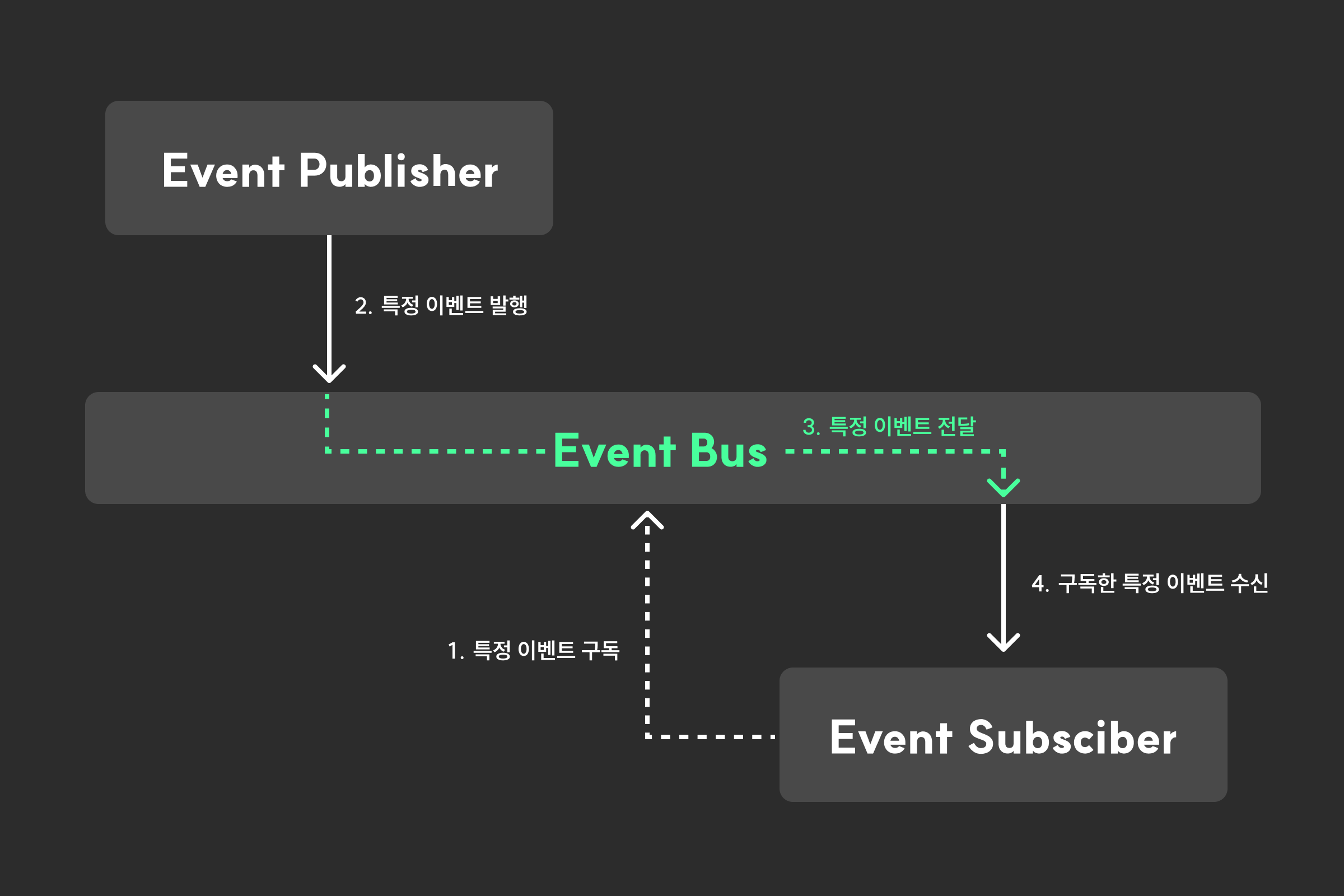 Event Bus 구조는 크게 4가지로 수행이 된다. 일단 하나씩 보고, 그 다음에 코드와 함께 보자.