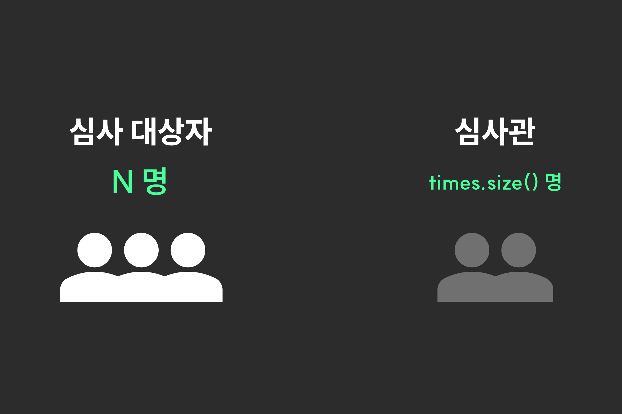 심사 대상자가 있고 심사관이 있는데, 심사관들의 심사 시간은 제각각이다.