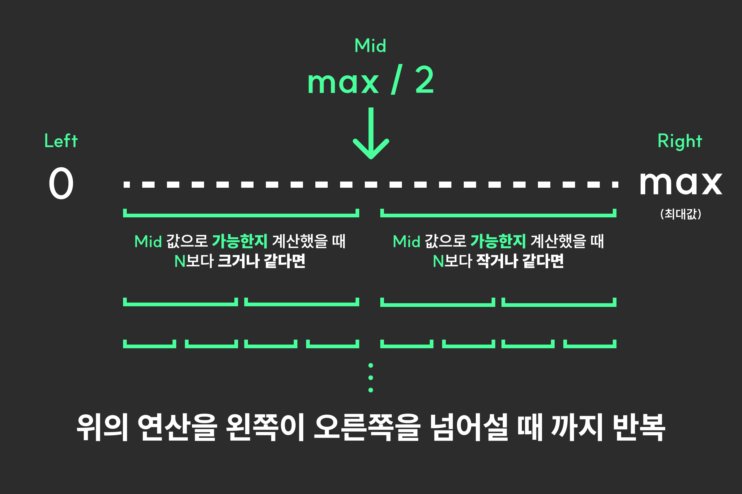그 뒤는 이분탐색을 사용하면 쉽게 해결이 된다. ▼