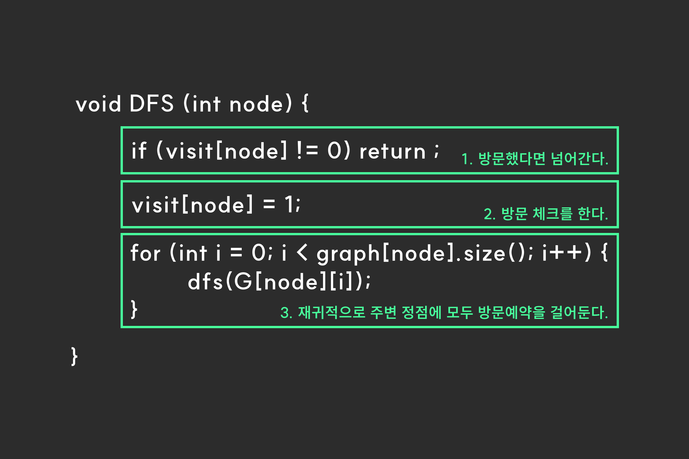 DFS를 짜는 방법은 여러가지가 있는데, 가장 대표적인 방법을 소개하자면 재귀다.