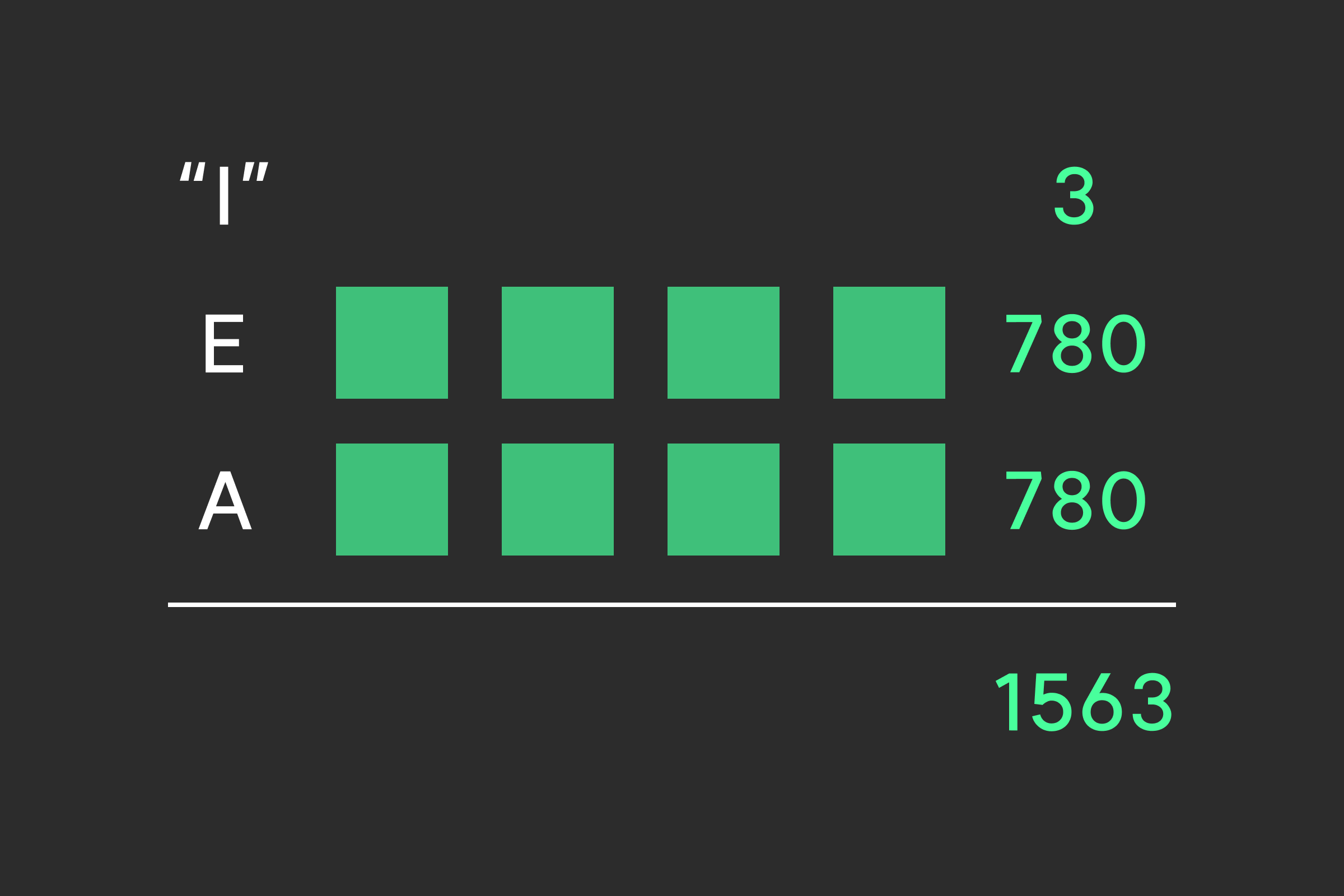 "I"라는 문자열이 들어왔다고 하면, I 앞에 A와 E가 있기에 2 * 780에 I 자체가 3번째 단어이기에 3을 더해주면 1563번째라는 값이 바로 나오게 된다. ▼