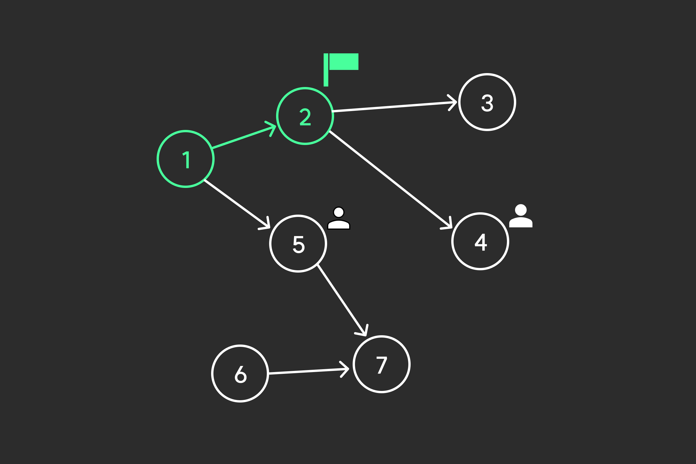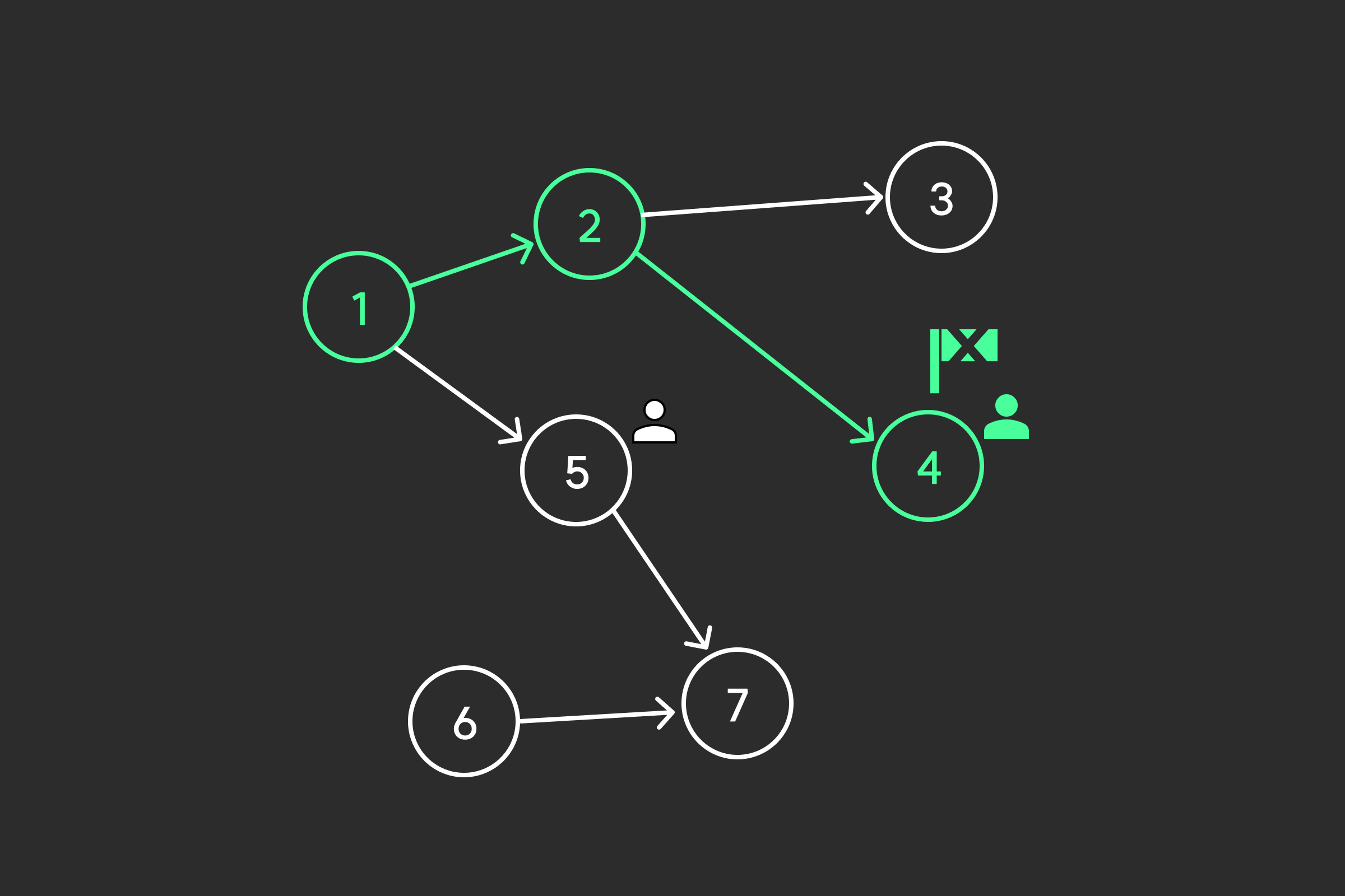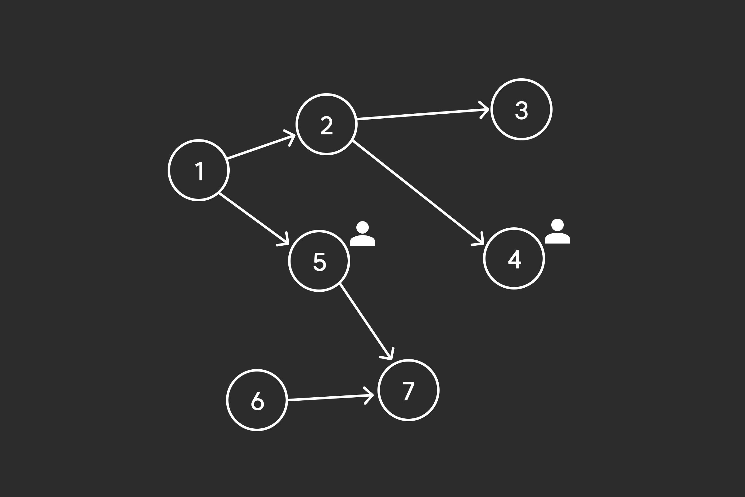 투어리스트 곰곰이는 종종 이 그래프 위에서 여행을 떠난다. 투어리스트 곰곰이의 여행은 1번 정점에서 출발해 간선을 따라서 이동한다. 그러다가 더 이상 간선을 따라서 이동할 수 없는 경우 투어리스트의 여행은 종료된다.