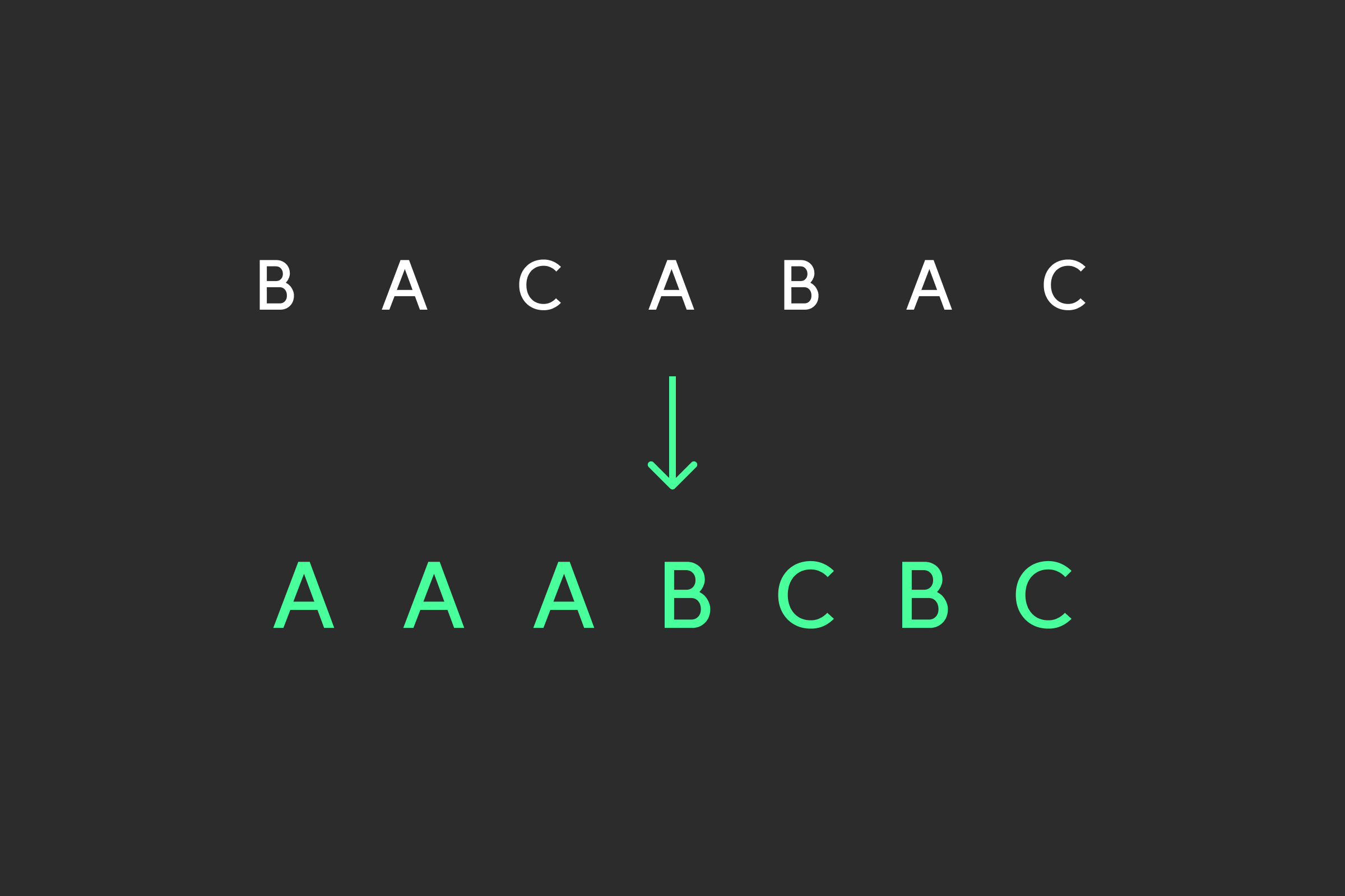 N장의 카드에 적혀있는 알파벳의 처음 순서가 주어질 때, 태욱이가 만들 수 있는 카드 문자열 중 사전 순으로 가장 빠른 문자열을 출력하는 프로그램을 작성하시오.