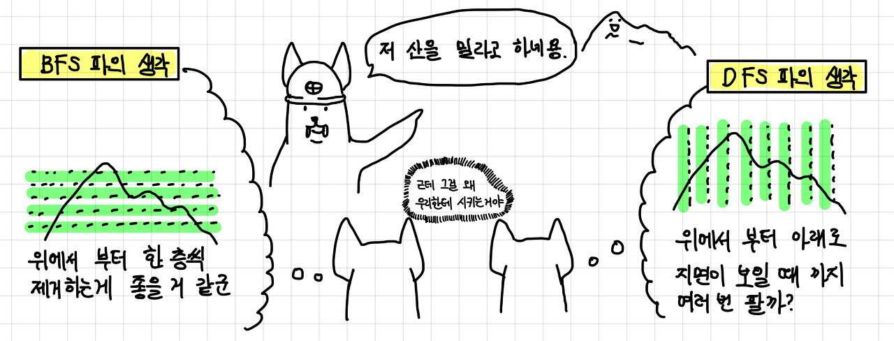 두 탐색법의 작동 과정은 그래프 알고리즘에서 설명하는 것으로 하겠다.