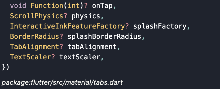 VScode의 기능으로 해당 위젯의 매개변수가 어떤 값을 기본으로 갖는지를 봐도, 기본은 null이기에 이 매커니즘을 알기가 어렵다. ▼