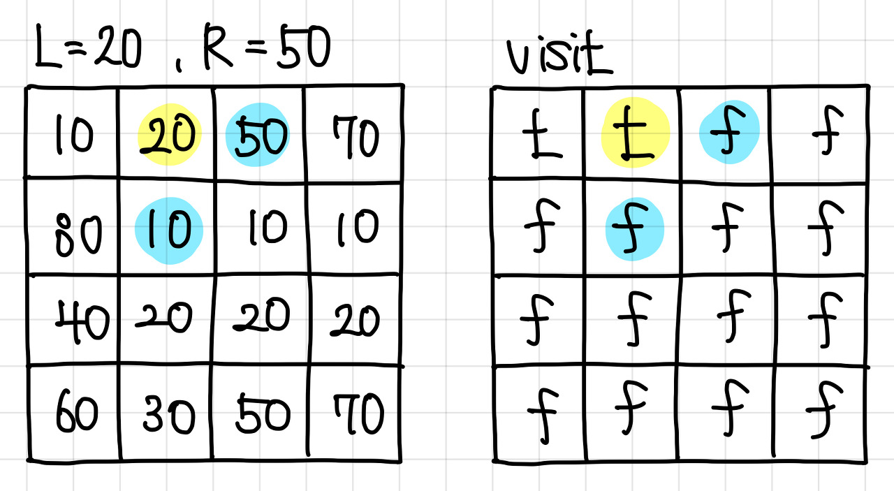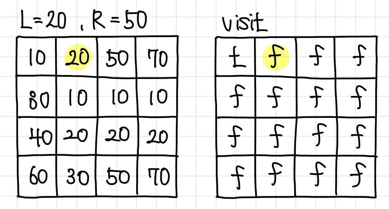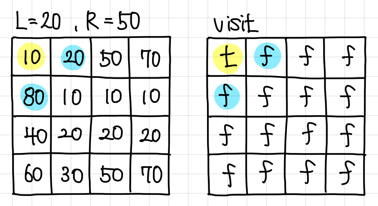 4. 발견한 false는 true로 바꾸고, 다시 4방향을 확인한다.