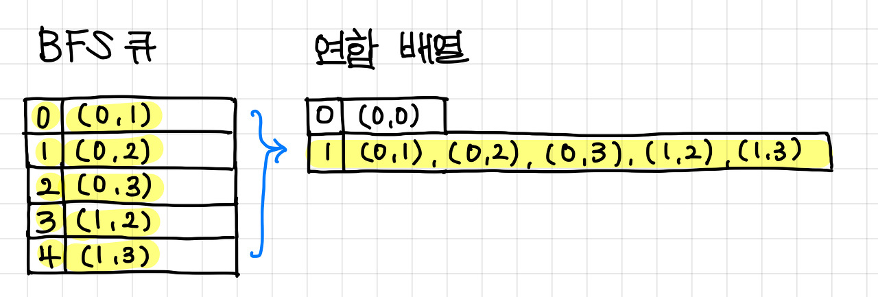 따라서 BFS큐에 있는 정보를 연합 배열에 넣어주면 된다.▼
