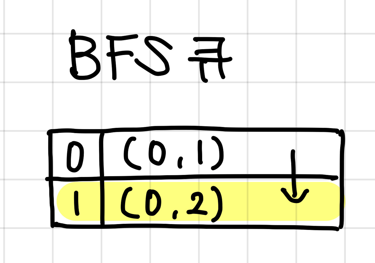 5. 조건에 맞는 곳이 나오면 이를 BFS큐에 집어넣고 현재 값을 BFS큐의 다음 값으로 바꿔준다.▼