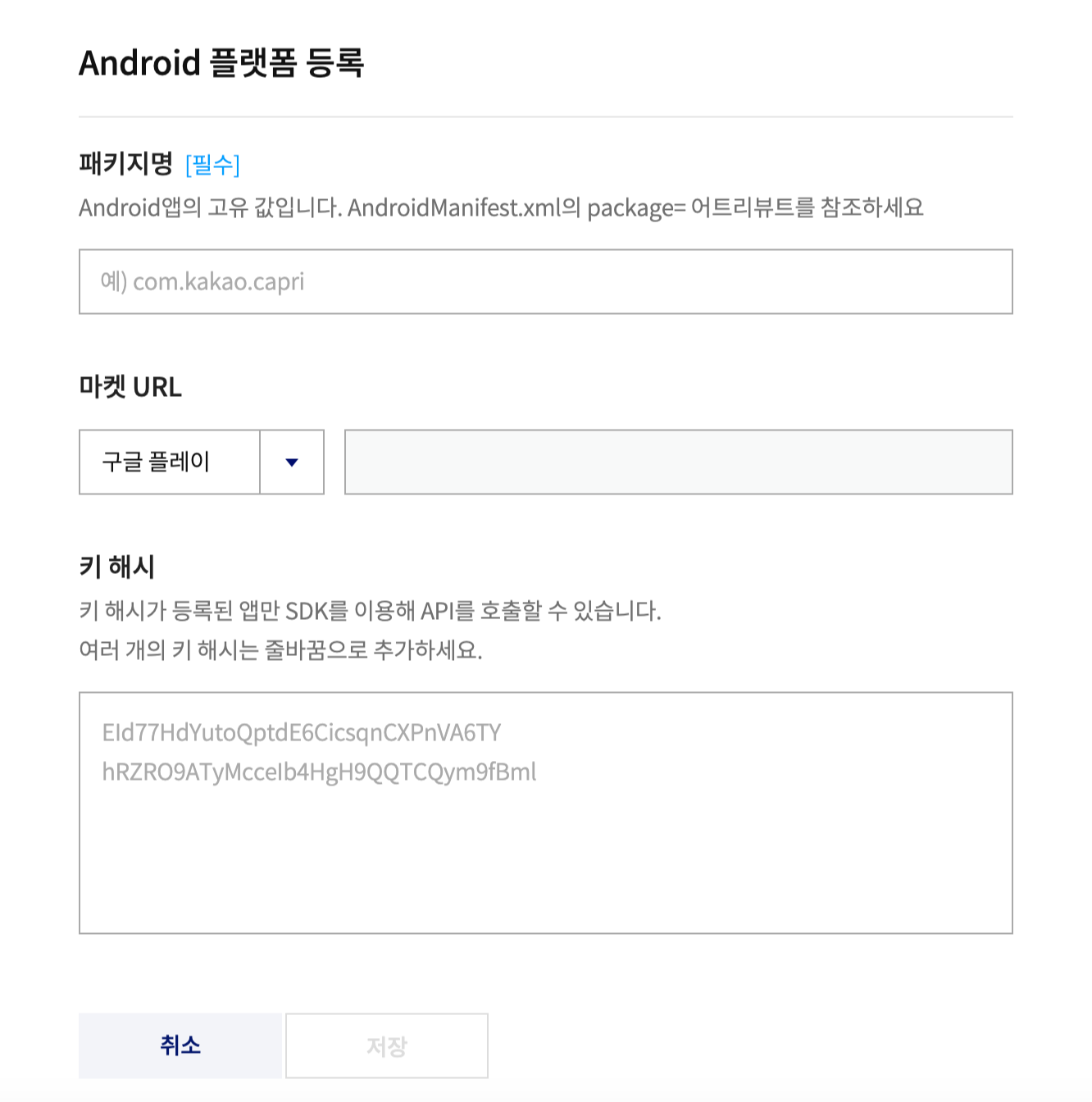 Android 플랫폼 등록을 할 때 키 해시를 등록하는 부분이 있다. 테스트를 할 때에는 디버그 키 해시를 받아서 등록을 해놓는데, 구글 플레이에 앱이 등록되고 나서는 릴리즈 키 해시를 등록해줘야한다. ▼