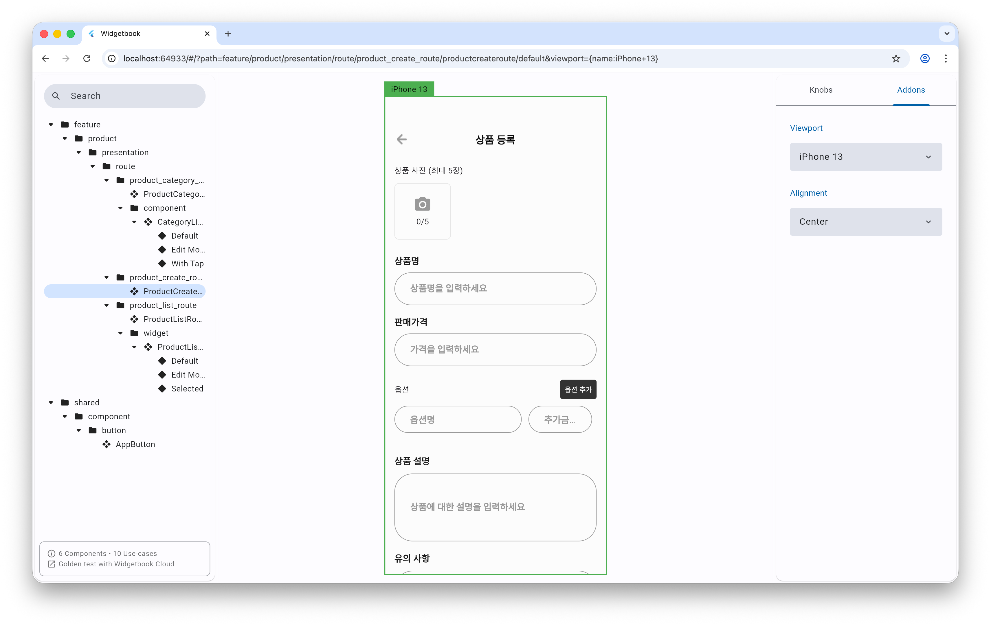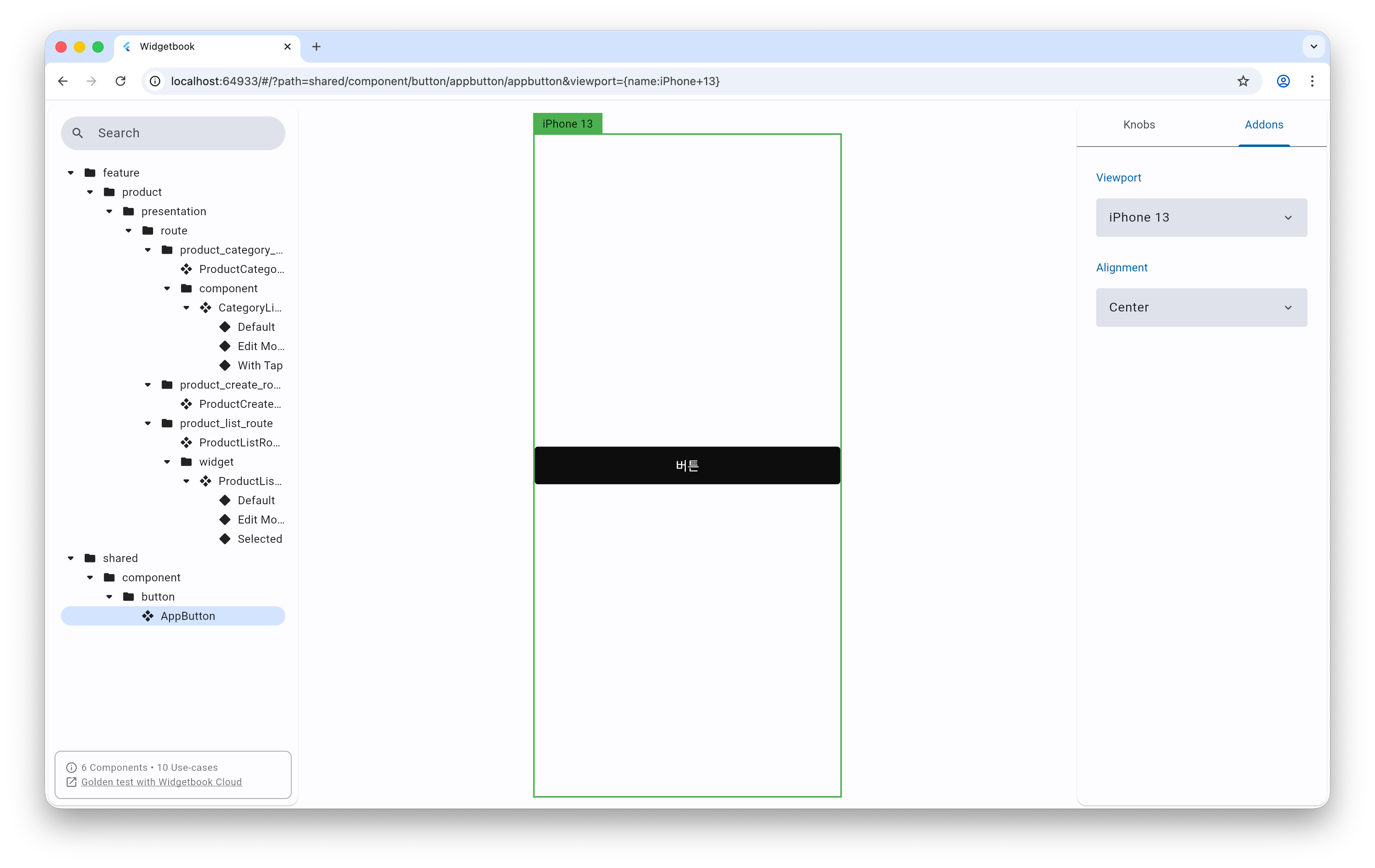 이렇게 작성하면 각 컴포넌트의 다양한 상태를 WidgetBook에서 쉽게 확인하고 테스트할 수 있다.