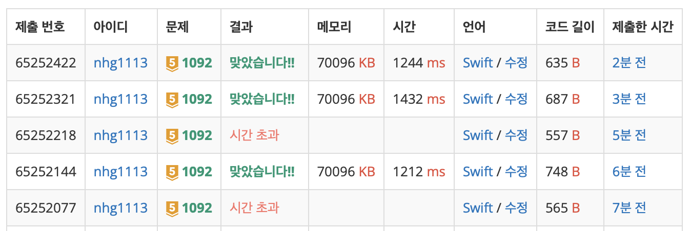 그래서 혹시 다른 Swift 이용자들은 어떻게 해결했나 하고 다른 분의 블로그를 봤더니, 내가 짠 로직과 완벽히 같은데 통과가 됐다는 글이 있었다. ▼