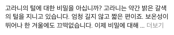 글자가 '더보기' 버튼을 피해서 줄바꿈이 되는 게 아니라, 그냥 버튼이 그 위를 덮어버리는 구조이기 때문에 시각적으로 매우 불안정하다.
