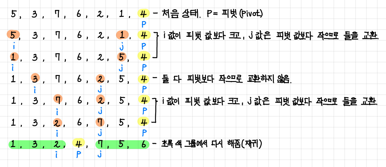 - 불안정 정렬(Unstable Sort)이다.값이 같은 원소가 있는 경우에 상대적인 위치가 변경될 수 있다.