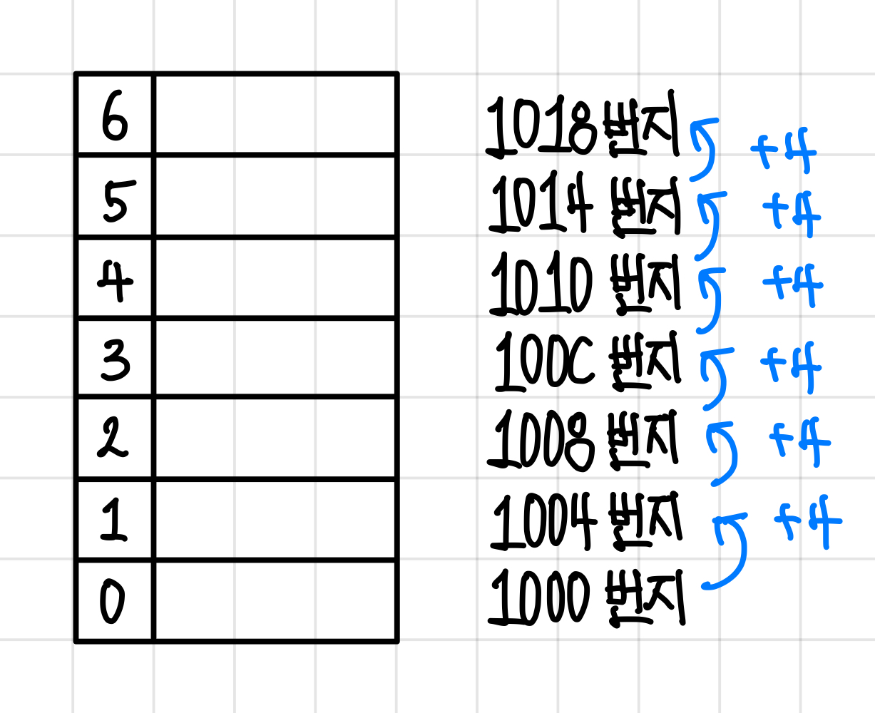 각 칸에는 메모리 주소로 접근이 되기 때문에 램의 Random Access가 가능하다.