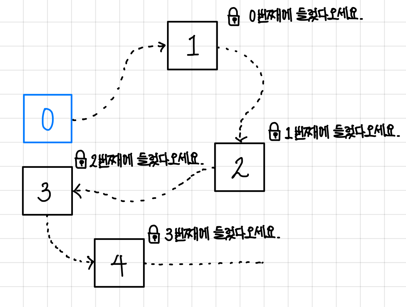 그렇기에 주소 계산으로 다음 인덱스가 어디있는지 알 수 없고, 무조건 노드에 저장되어있는 다음 주소 정보를 확인해야 다음 인덱스가 어디있는지 알 수 있다.