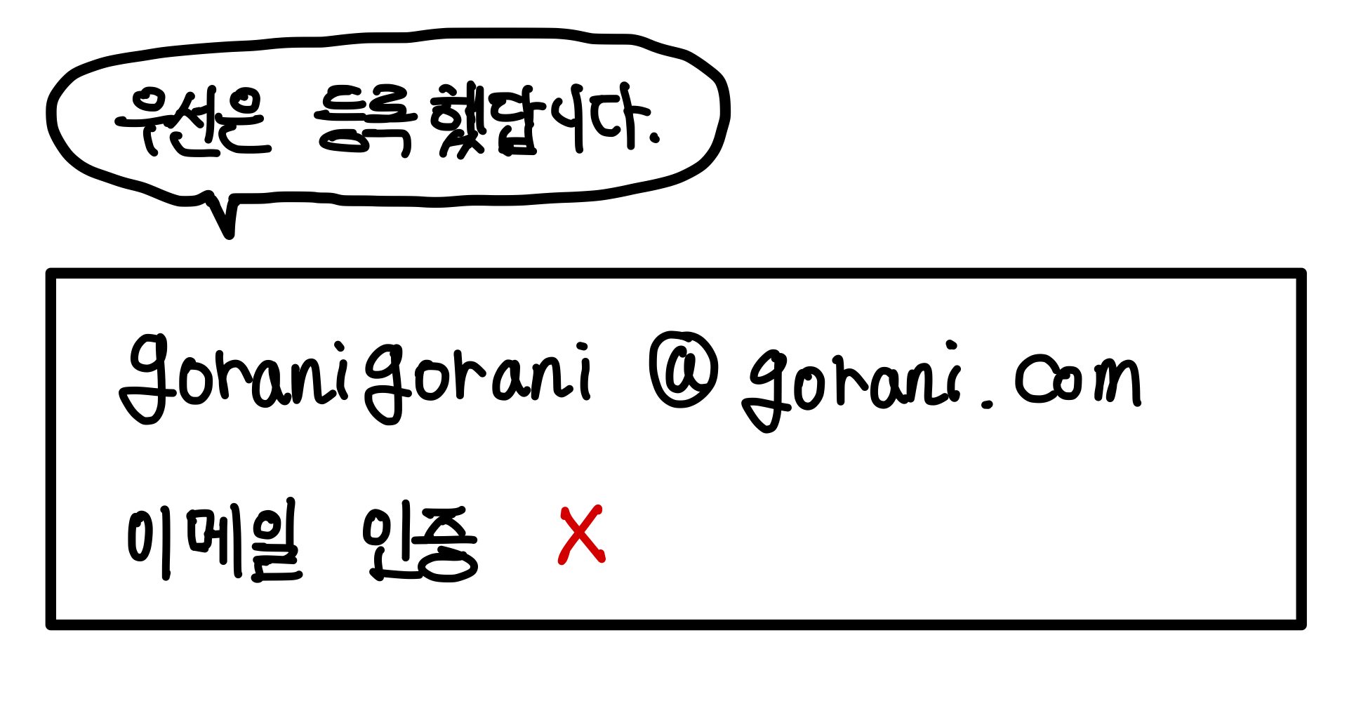 예를 들어, goranigorani@gorani.com 이라는 이메일로 누군가 회원가입을 시도했다고 하자.