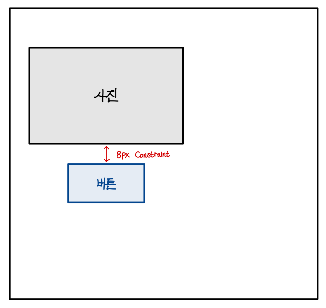 이 때, 버튼의 상단 가장자리 부분이 사진의 하단 가장자리 부분과 8px의 거리를 두게 제약을 설정했다고 해보자. ▼