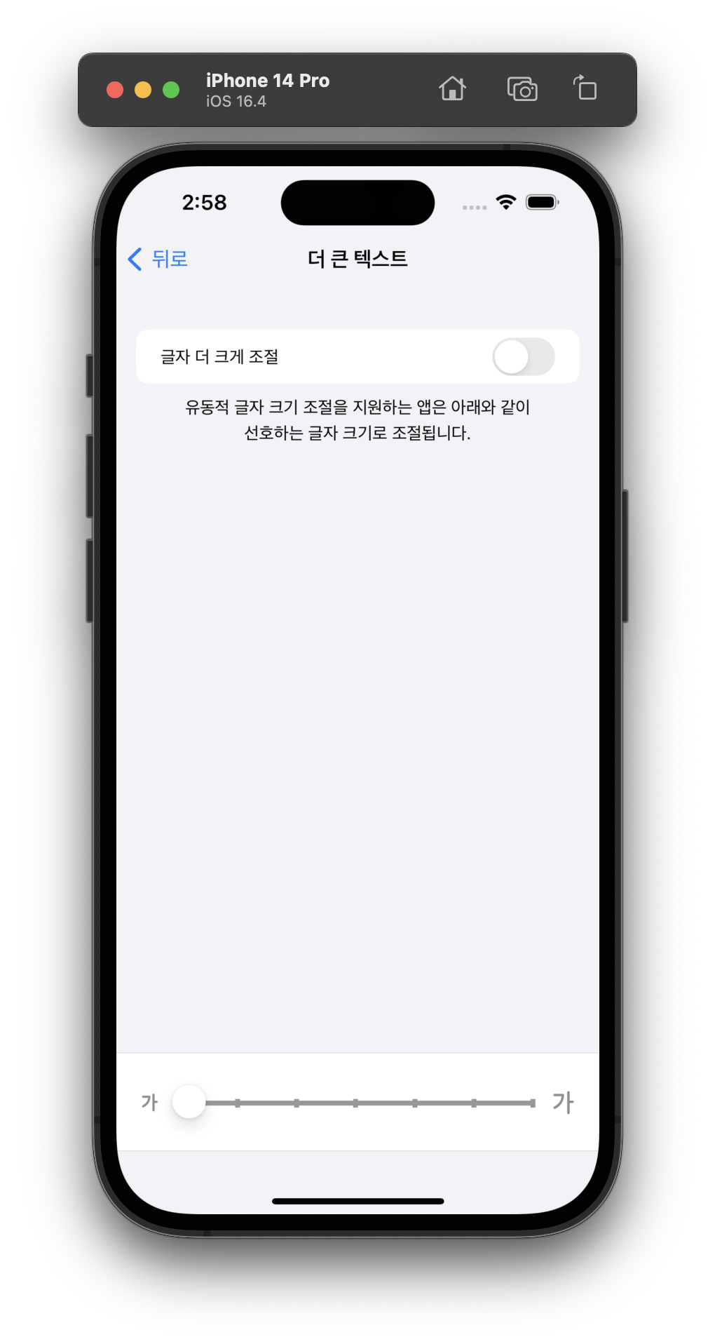 iOS 앱이 동적 글꼴 크기 조정을 지원하는 경우 사용자는 앱에서 사용되는 글꼴 크기를 변경할 수 있다.