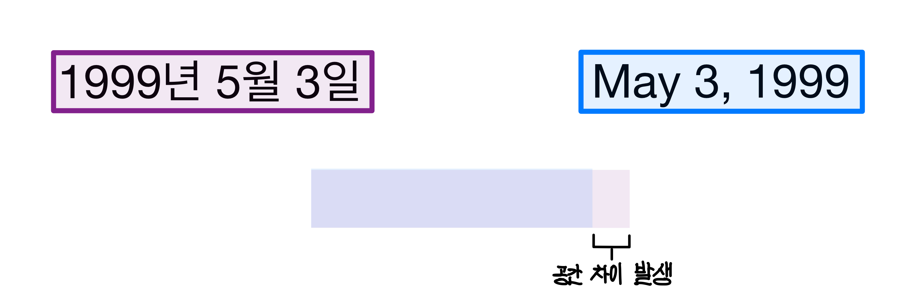표기 방식에 쉼표가 들어가거나 다른 표기 문구가 들어감으로써 약간의 공간 차이가 생길 수 있다.