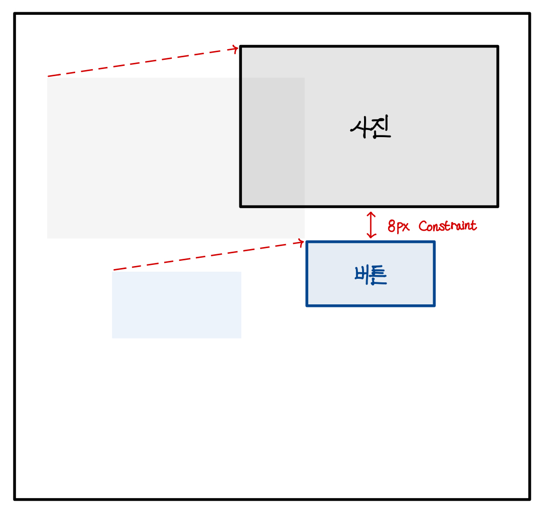 이 때, 버튼의 상단 가장자리 부분이 사진의 하단 가장자리 부분과 8px의 거리를 두게 제약을 설정했다고 해보자. ▼