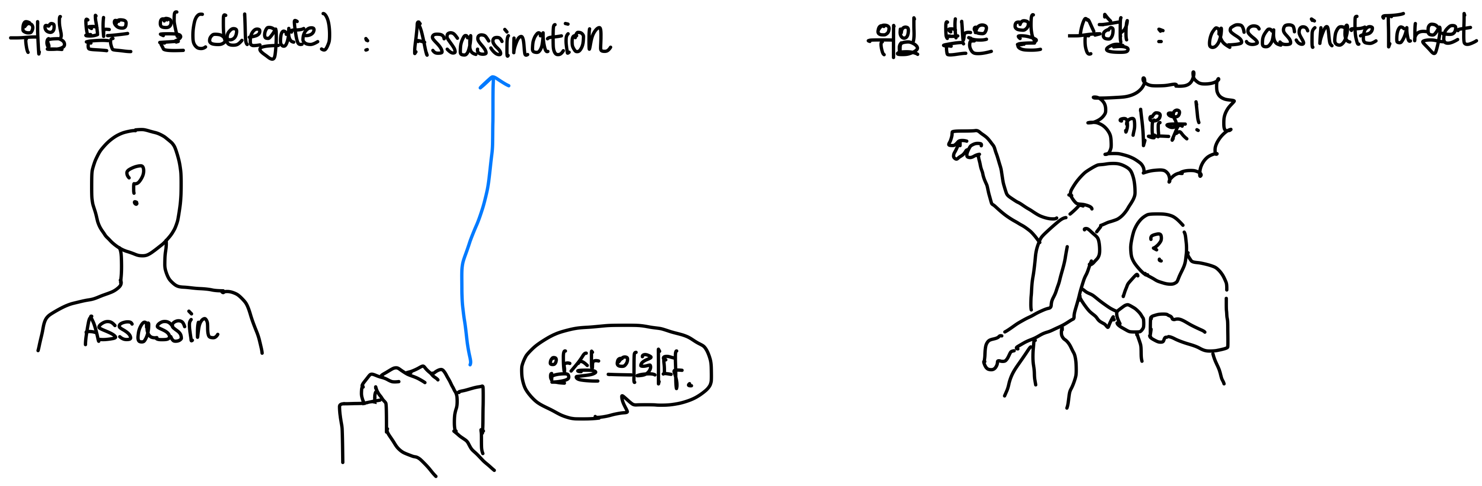 이렇게 되면 `AceAssassin`과 `DumbAssassin`에 `Assassin` 객체가 위임이 된다.