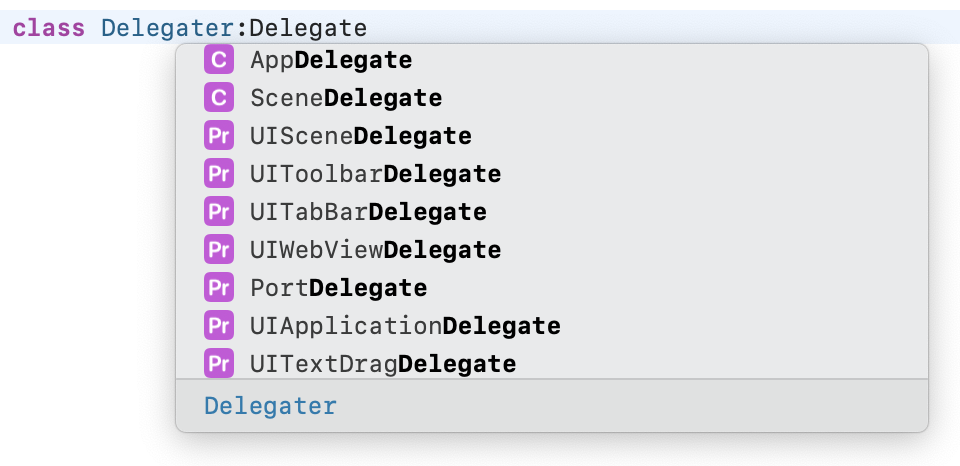 가장 처음에 보이는 파일인 AppDelegate.swift와 SceneDelegate.swift부터 각종 UI컴포넌트를 구현하기 위해 사용하는 Delegate들 까지, Delegate 패턴이 굉장히 많이 사용되는 것을 알 수 있다.▼